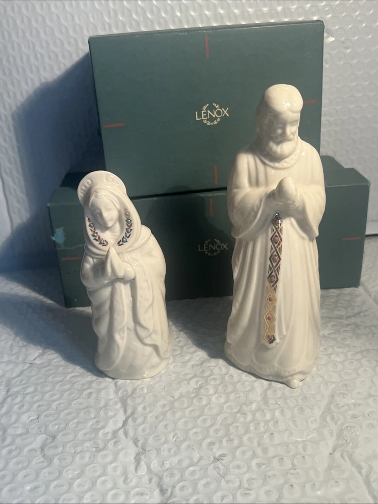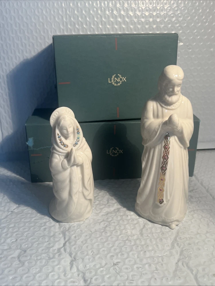 We Strive for nothing less than 5 Star FeedBack and 100% satisfied buyers! If for any reason you are not completely satisfied with your purchase before leaving feedback Please contact us with any questions or concerns. Vintage Lenox China Jewels Nativity Set Joseph & Mary 1993 Holy Family USA w Box Condition: mint w/original box condition see photos original . If there is anything wrong with the item or not as described, please contact me as soon as possible. Item is for sale as it came to us. All items pictured are included in auction. No other accessories are included in auction. please read our descriptions and check our pictures for the best item explanation before purchase. Please read the item description and look at the photos carefully before bidding We will describe the item to the best of our ability. PLEASE ASK QUESTIONS PRIOR TO BIDDING. WE WILL BE MORE THAN HAPPY TO ANSWER QUESTIONS THE BEST WE CAN Buyer assumes responsibility for all shipping and processing charges. THIS AUCTION IS FOR 1 (one) item unless otherwise specified. Bchanes27 reserves the right to end any auction at anytime! All of our items will typically ship within 1 Business day After payment is confirmed. WE ONLY ACCEPT PAYMENT THROUGH PAYPAL AND ONLY SHIP TO U.S. ADDRESSES Except Hawaii, Alaska and Puerto Rico. Be sure to check out our other items and save us as a favorite seller! Keep an eye on our auctions, you never know what we might have! We appreciate you looking at our items, Good luck and Happy Bidding