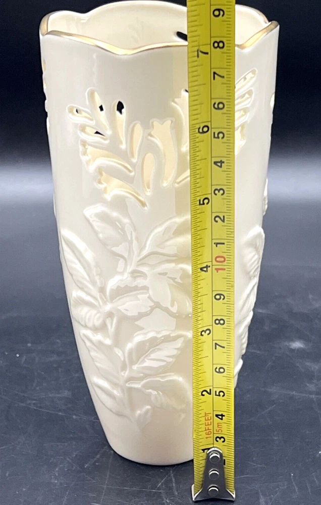 Vintage Lenox Lattice & Raised Leaf Vase 7 Inch 24 Gold Trim. Made in USA This vase is in Excellent pre owned condition from my dear friends collection . I will pack with care and get it to you ASAP Thank you for looking !