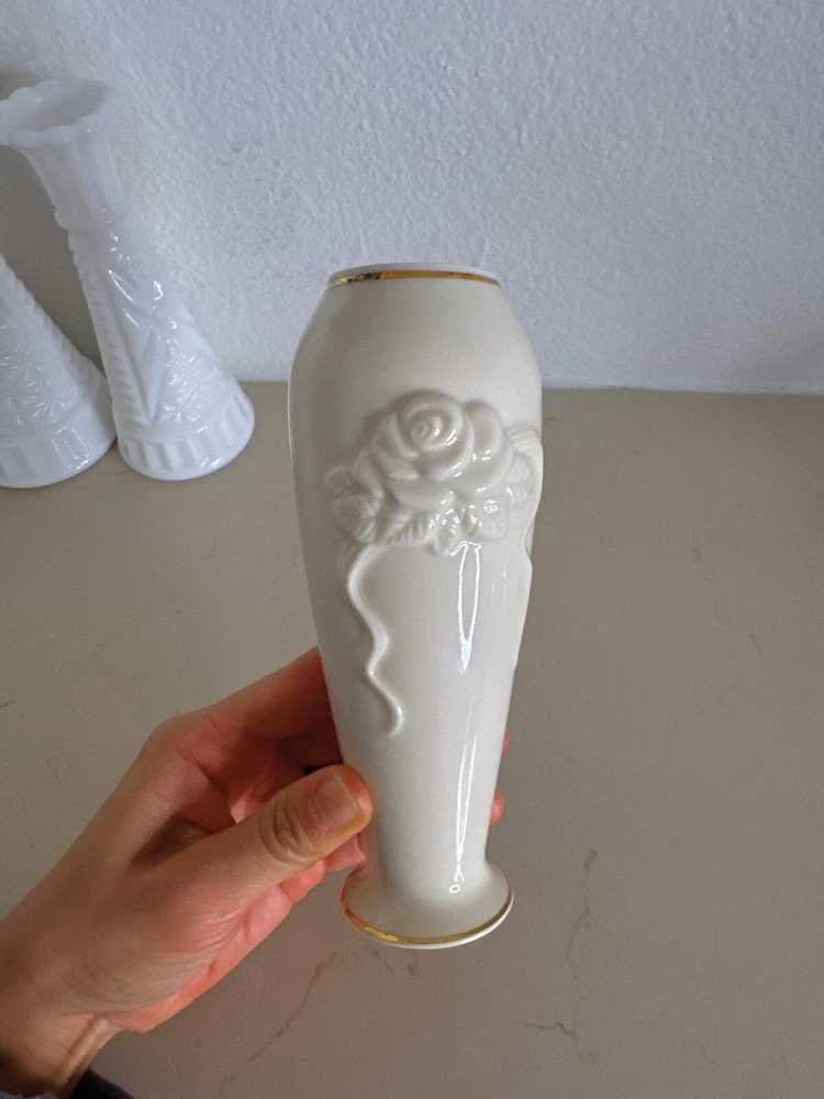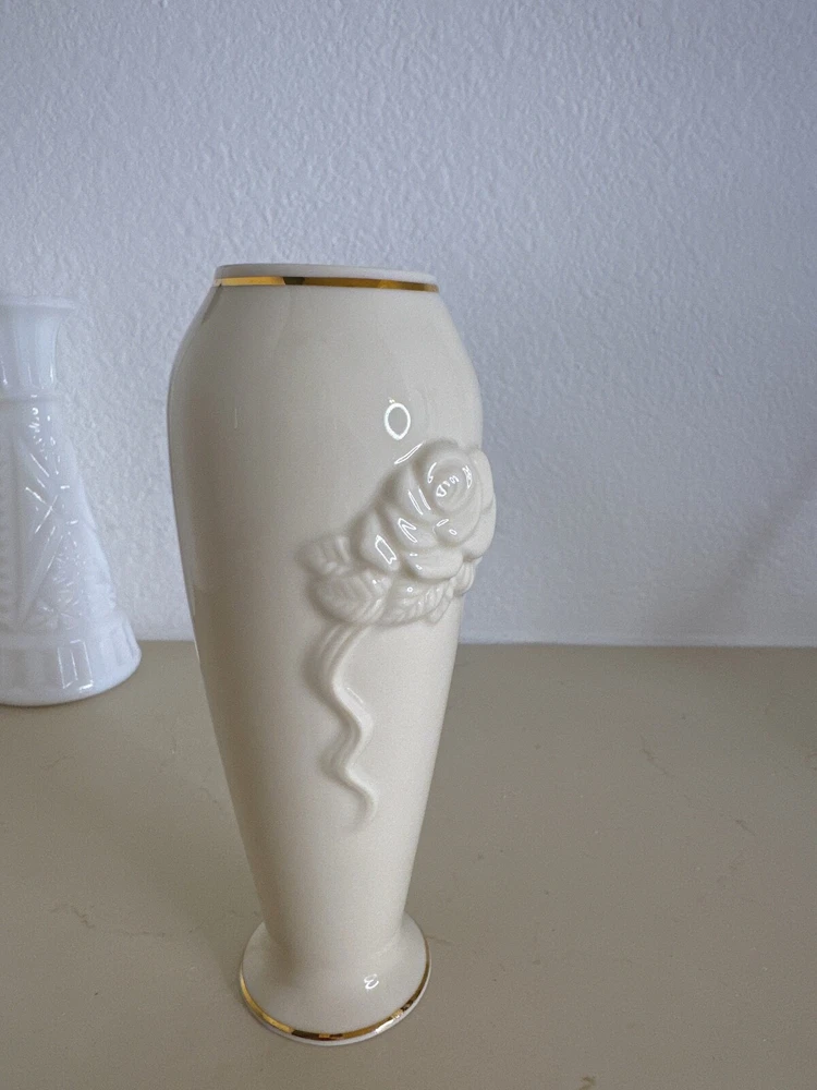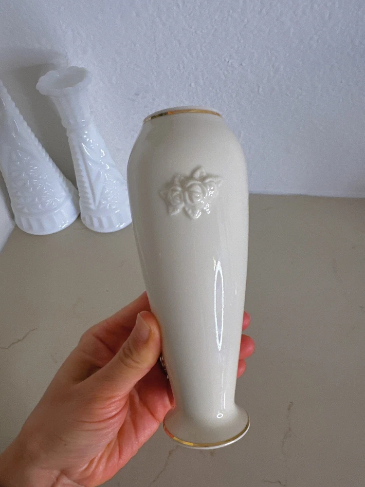 Vintage LENOX Rose Blossom Bud Vase with 24k gold rim. 1980's vintage but in a great condition. Size for this vase is : 2.7 x 6" Feel free to ask more questions! Thanks