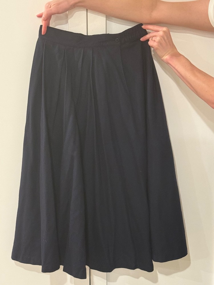 Vintage Leslie Fay Navy Blue Pleated Skirt – Size 12 – Timeless Elegance! Step into classic sophistication with this beautiful vintage Leslie Fay pleated skirt in a rich, versatile navy blue. Perfect for office looks, smart-casual outings, or dressing up with a crisp blouse and heels – this piece screams understated 80s/90s chic while still looking completely current. Details: - Brand: Leslie Fay (iconic American label known for polished, feminine designs) - Color: Deep navy blue – a true wardrobe staple that pairs with everything - Style: All-around knife pleats that create gorgeous movement and a flattering, flowy silhouette - Size: Marked Size 12 (please check measurements below for best fit) - Era: Vintage – most likely late 1980s to early 1990s - Condition: Excellent vintage condition – no stains, holes, or fraying. Pleats are crisp and hold their shape beautifully. Zipper works perfectly. Approximate measurements (taken flat): - Waist: 15″ across (30″ around) - Hips: Free/full due to pleating - Length: 29″ from waistband to hem (classic midi length on most) Fully lined for comfort and opacity, with a side zipper and button closure. The fabric has a subtle sheen and lovely weight that drapes elegantly without clinging. This is the kind of timeless piece that never goes out of style – think “The Devil Wears Prada” meets everyday wearability. From a smoke-free, pet-free home. Ready to be loved for another decade (or three)! Don’t miss out on adding this gem to your vintage collection or everyday rotation! ✂️💙 Feel free to message me with any questions or for additional photos. Happy to combine shipping on multiple items!