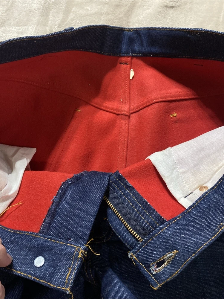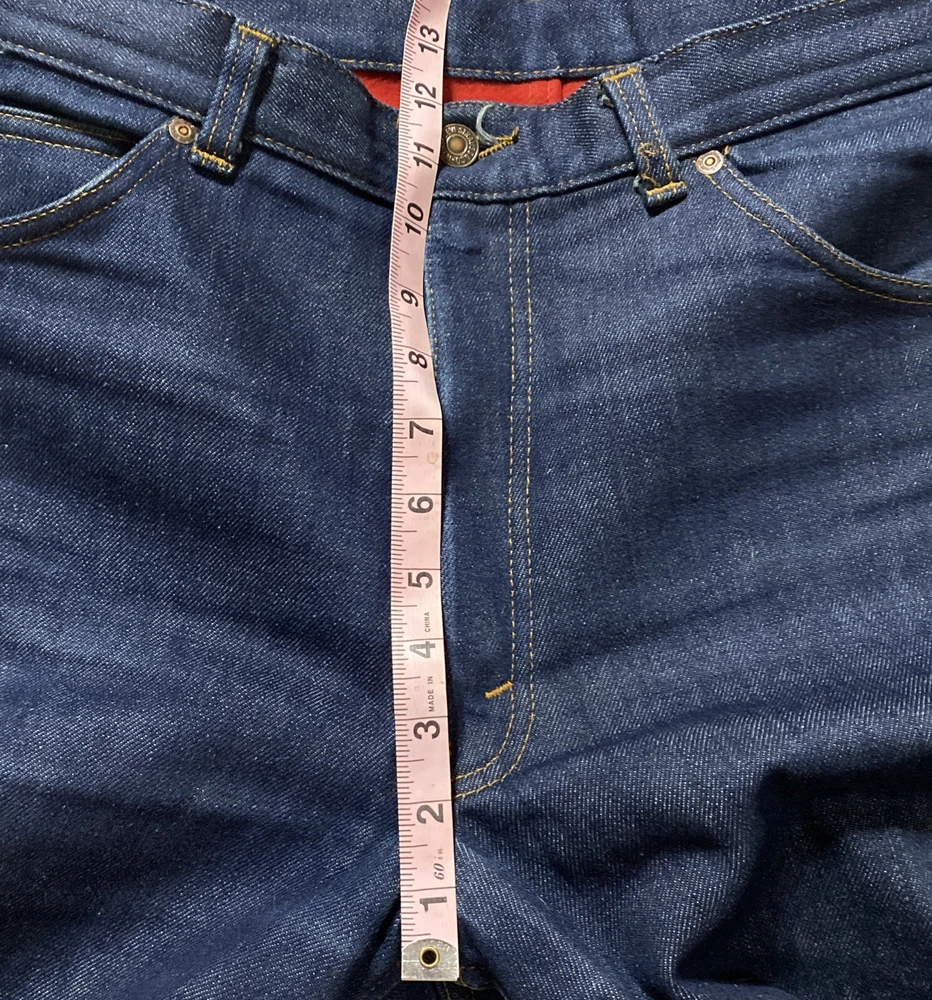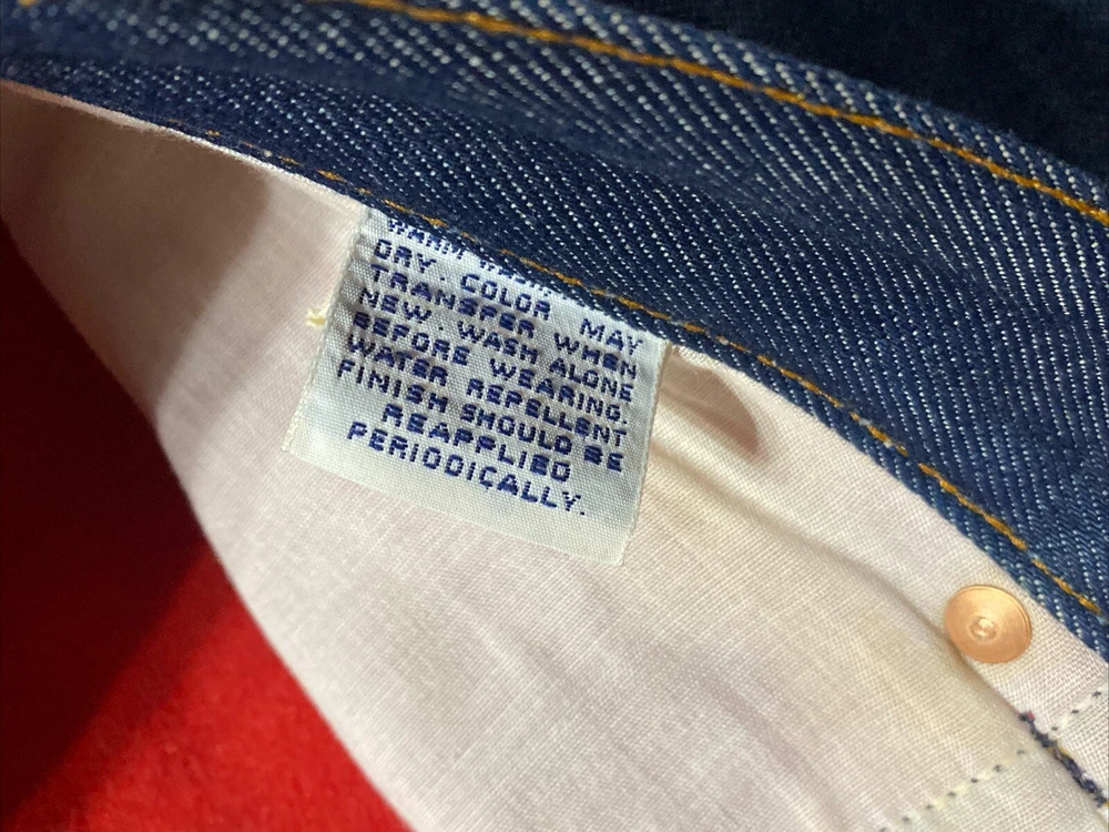Vintage Levi’s Jeans. Lined with soft red fleece. Stated size: 36x30 See measurements in photos for accurate size as these have been altered to a 28” inseam but can be undone if buyer is looking for 30” inseam. No holes or stains. These are in like new condition. They are, indeed, water repellent. The last photo is me testing them and the water did not soak in but instead followed a trail quickly that lead to the floor and not into the sink as I planned for! I let water run over the pocket which my hand inside and no water came through the fabric.