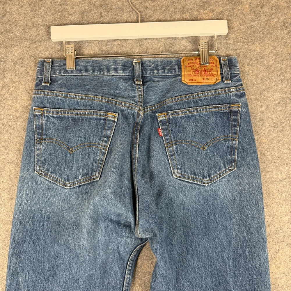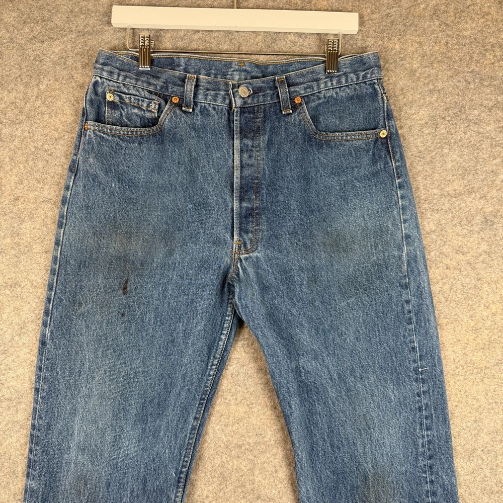 Vintage 90s 501xx with marks all over seen in photos. Actual fit is 31x31. Measurements Taken: Waist - 31" Inseam - 31" Rise - 11.5" Please Note - Tag size may not always be accurate due to sizing differences within brands. I measure each item to make it easier. I ship Daily so expect a Quick delivery! Thank you for viewing my listing!
