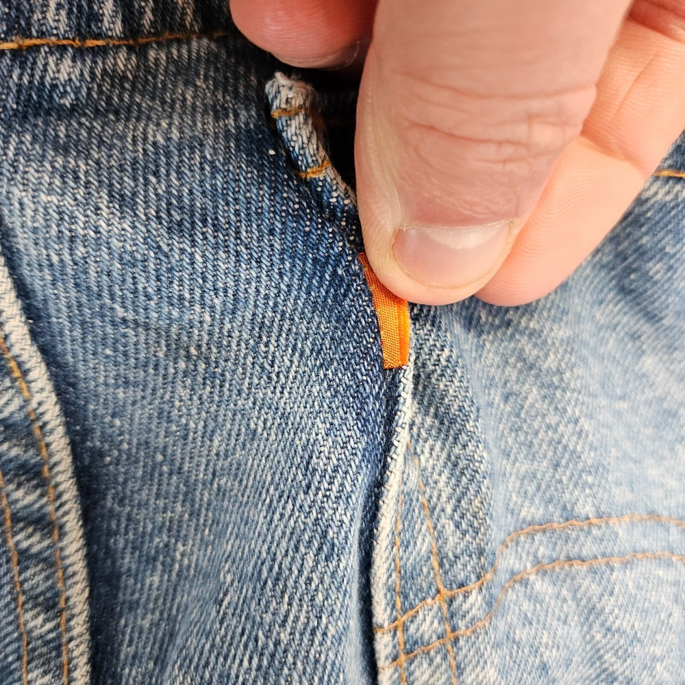 Vintage Levis Orange Tab Tapered Blue Denim Jeans 36x30 Made in Canada