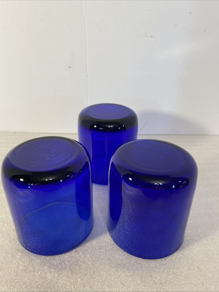 Vintage Set of 3 Libbey 8 oz. Cobalt Blue Round Bottom Rock Glasses. Condition is Used. Shipped with USPS Ground Advantage.