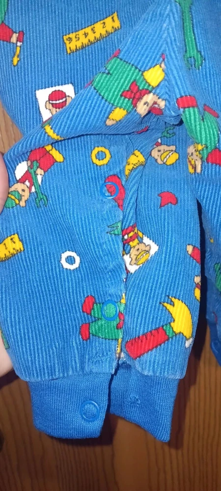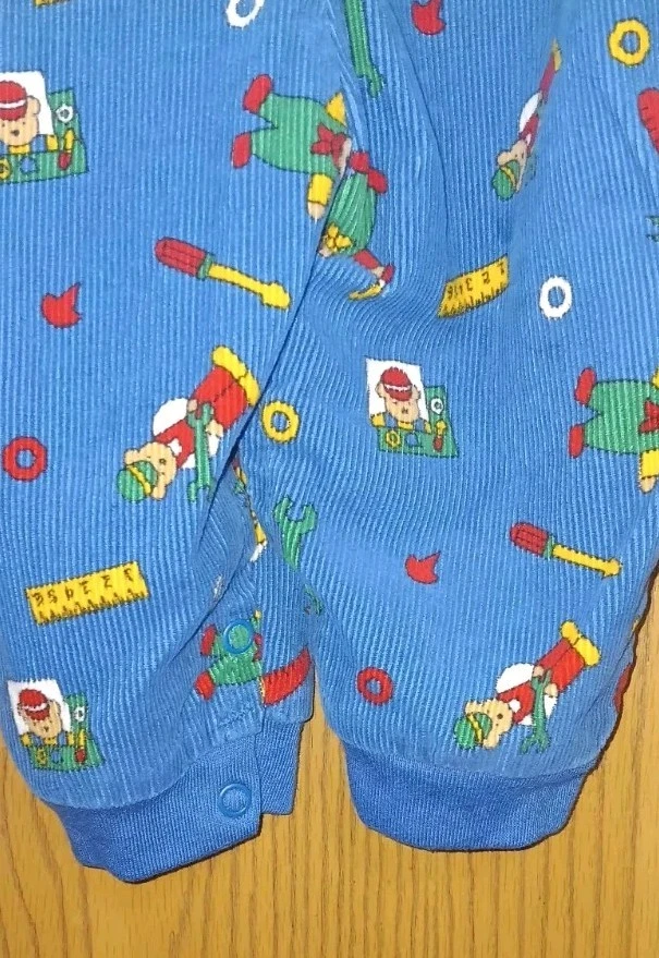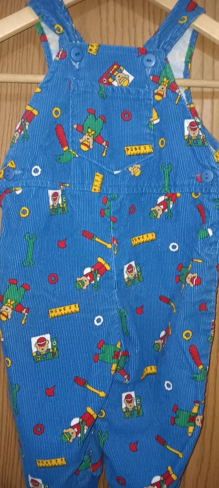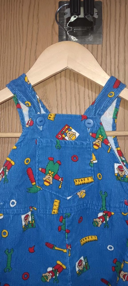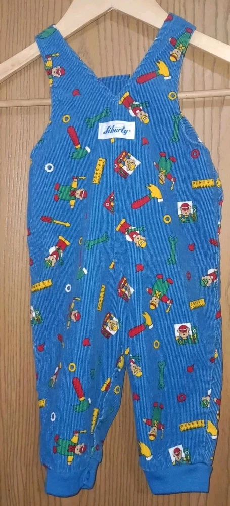 These vintage Liberty baby corduroy overalls in size 6/9 months are a charming addition to any little one's wardrobe. The classic blue color and adorable teddy bear theme make them perfect for both baby boys and girls. Made from soft corduroy fabric, these one-piece overalls are durable and comfortable for your little one to wear. With a timeless style and high-quality brand like Liberty, these overalls are sure to be a favorite for your baby for years to come. ****there is a botton missing on one of the legs as shown in last photo***