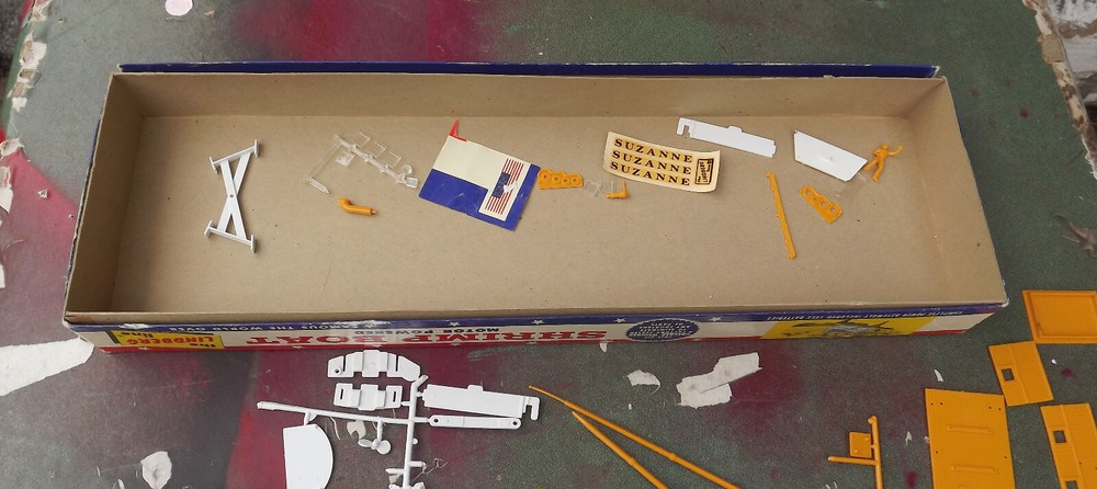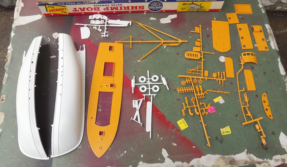 Lindberg Boat Kit: Possibly first release of Shrimp Boat Suzanne, 712M. Nice box save pen crossout on the motorized blurb, enough here to build the boat, but the motor is absent and possibly other parts - I blew it all out on the card table and what's there is there. The good news is the motor looks to be the same as other Lindberg models so it might not be hard to come by. Appears to be 1/72 or perhaps 1/64th scale. I see newer re-releases of this kit bring decent money so thought I'd list it. Loose parts will be bagged for shipping and I will put some padding in the box. Shipping: Ships Priority Mail or FedEx Ground. International will be Priority Mail with confirmation - sorry, Canadian buyers, eBay and PayPal rules require me to use a shipping method that is scanned on delivery. Payment: Please wait for invoice before payment. Due in 5 days from receipt of invoice. Paypal, in person payments are accepted, in person payments delivered via third party are acceptable, feel free to ask if you have any questions.