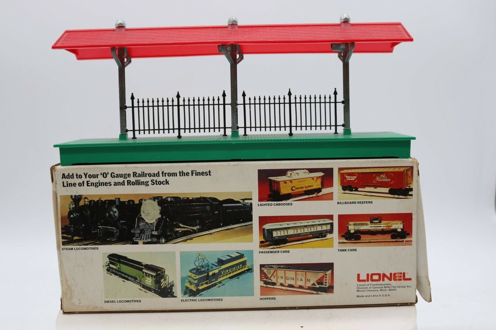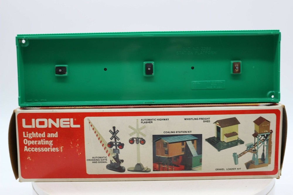 Lightly Used Lionel #156 Station Platform 6-2256 Look closely at the pictures to see further details. We ships USPS PLEASE see photos for detailed condition!! There may be pieces that are missing or broken including, but not limited to, couplers, brake wheels, steps, ladders, railings, etc. May need detailed cleaning. PLEASE LOOK AT THE PHOTOS CAREFULLY BEFORE PURCHASING!! If you are purchasing more than one item from us and would like combined shipping, PLEASE request an adjusted invoice from us while still in the cart and BEFORE paying. Ebay does not usually calculate combined shipping accurately and you might get overcharged. Please be aware that when we photograph items, we use lighting that will show the details well. Although we try to present the product as accurately as possible, the lighting may affect the overall look of the item by appearing lighter/darker or possibly a different hue than the actual item. Depending on the type of lighting you have in your home, there may be some differences between the photos and the actual item. If this is a concern of yours, please feel free to request additional photos made in natural lighting or ask for a more detailed description of the item PRIOR TO PURCHASE! PLEASE NOTE: We greatly appreciate your interest in our item for sale. We look forward to a pleasant, quick and satisfying transaction for everybody, so please note the following information before bidding. Thank you! ITEM DESCRIPTIONS: * We will try to describe items well and provide plenty of photos. Please review these carefully before bidding or purchasing. * Only the items pictured and described are what you will receive when purchased. * We will occasionally offer an item clearly marked "AS-IS". This means that we are not sure if it works because we are unable to test it for whatever reason. We will offer these at a discounted price then a similar "working" item. It is possible that these items will work fine, but it also is possible that these items are more useful for their parts. Please only bid on or purchase these items if you are well aware of this, as we will only provide refunds of actual item price (no shipping cost refunds) for these items. * If you have any questions that aren't addressed by the descriptions or photos, please feel free to ask before you bid. SHIPPING: * We offer international shipping, if you have any questions please reach out. * We try to pack items as carefully as possible, but damage may occur during shipping. If you receive an item that was damaged in shipping, please contact us and we will work with you to resolve the problem. * We will combine shipping costs for all items the same buyer purchases from us within 2 days. Please wait to pay for items until you're done shopping with us. Please contact us if you're expecting to buy more items from us, or to have us adjust the shipping costs. * We will usually ship items out within 24 hours of payment being received Sunday through Friday at noon. We will notify the buyer if there will be a delay in shipping for some reason. Please allow additional time for holidays and weekends when the post office is closed. If payment is received after noon (EST) on Friday, the item might not be shipped until the following Monday. * We do try to recycle shipping materials as much as possible. RETURNS: We abide by eBay's Money Back Guarantee. We definitely want our customers to be happy with their purchase! You may return an item within 30 days of receiving it with the following guidelines: * If the item is defective or damaged (unless we clearly marked the listing "AS-IS"), the buyer will receive a full refund after the buyer returns it and it is received by us. Customers who falsely claim their item is defective, damaged, or not as described in order to receive a full refund and free return shipping will be permanently blocked from making future purchases from us. * If the item is as described (including "AS-IS" items) and the buyer decides for any other reason than defective/damaged to return it, only the actual price of the item will be refunded once it has been returned and it is received by us. The buyer will be asked to pay all original and return shipping charges. This includes all reasons other than defective/damaged, including wrong size, wrong type, changed mind, etc. All "AS-IS" items will fall into this category of return. Please make sure the item is what you want before purchasing it. * Please contact us before initiating a refund request. FEEDBACK: We always leave feedback at the end of transaction. We consider the transaction to be over when we receive feedback from the buyer confirming the item arrived satisfactorily. If you are unsatisfied with your purchase please contact us before leaving neutral or negative feedback. WE APPRECIATE POSITIVE FEEDBACK IF YOU ARE SATISFIED WITH YOUR PURCHASE! THANK YOU FOR YOUR INTEREST IN THIS ITEM!