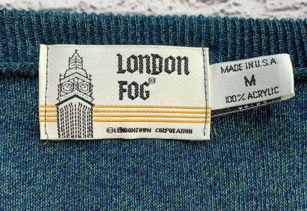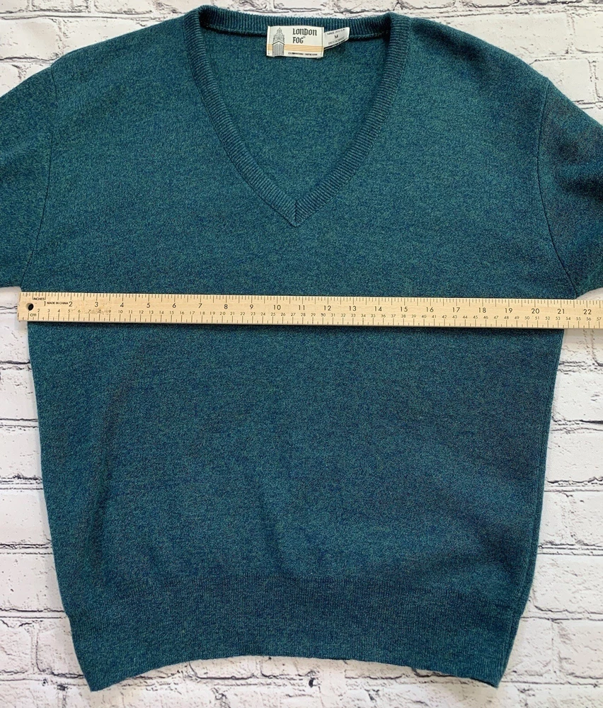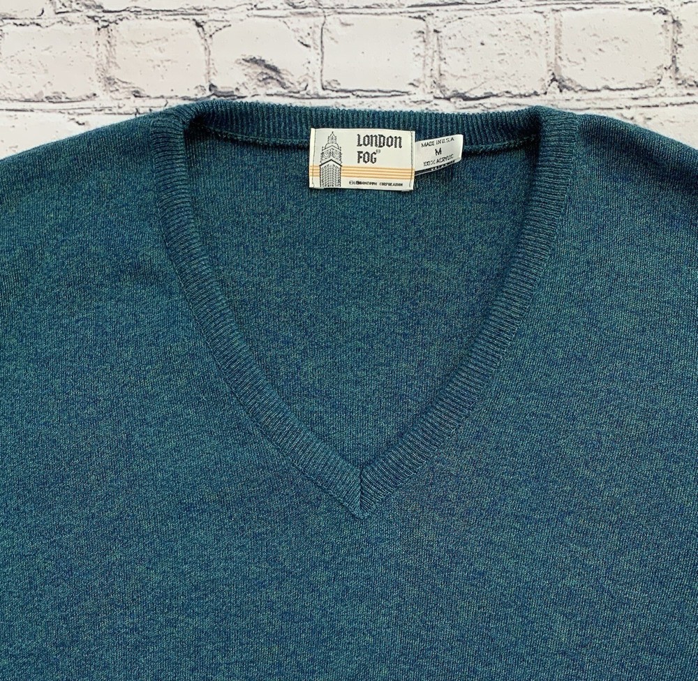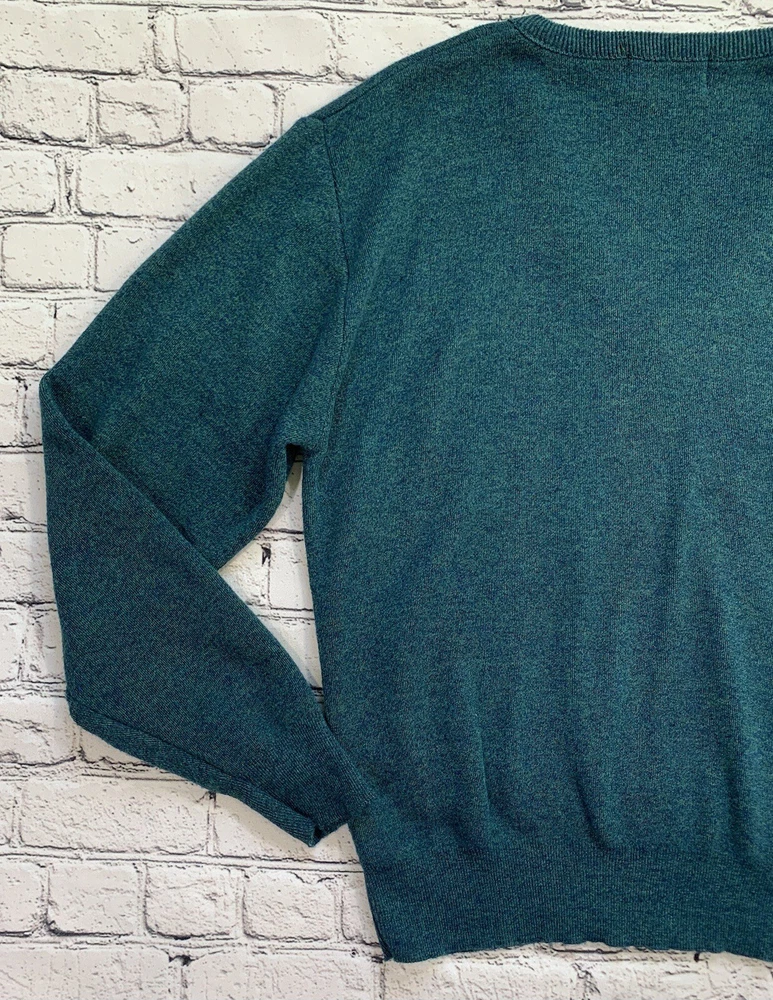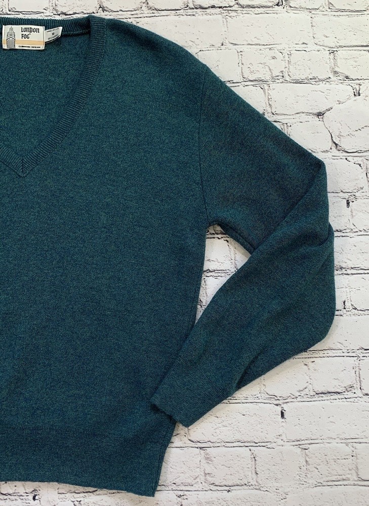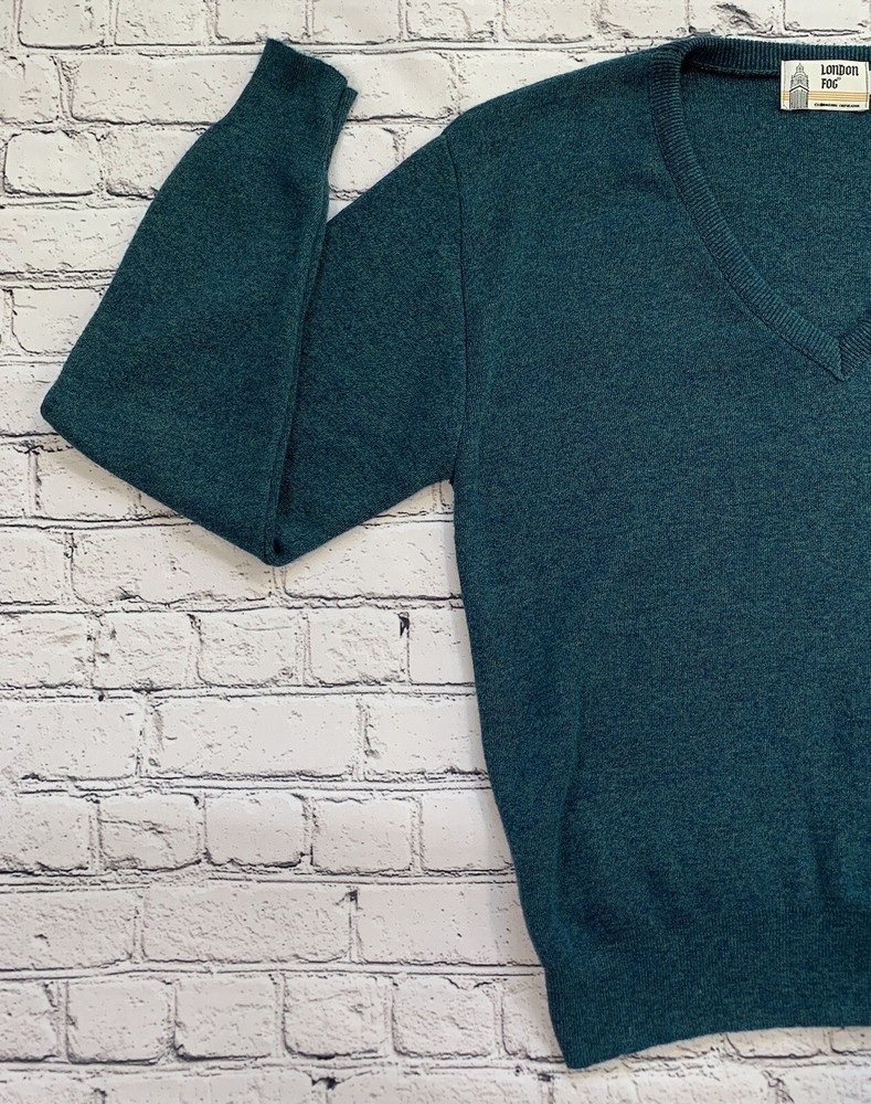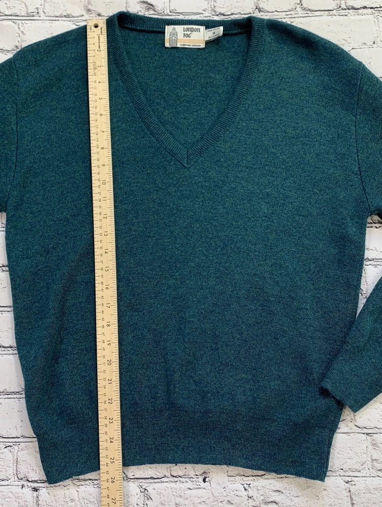 Vintage London Fog Green V-Neck Long Sleeve Pullover Sweater Adult Size M