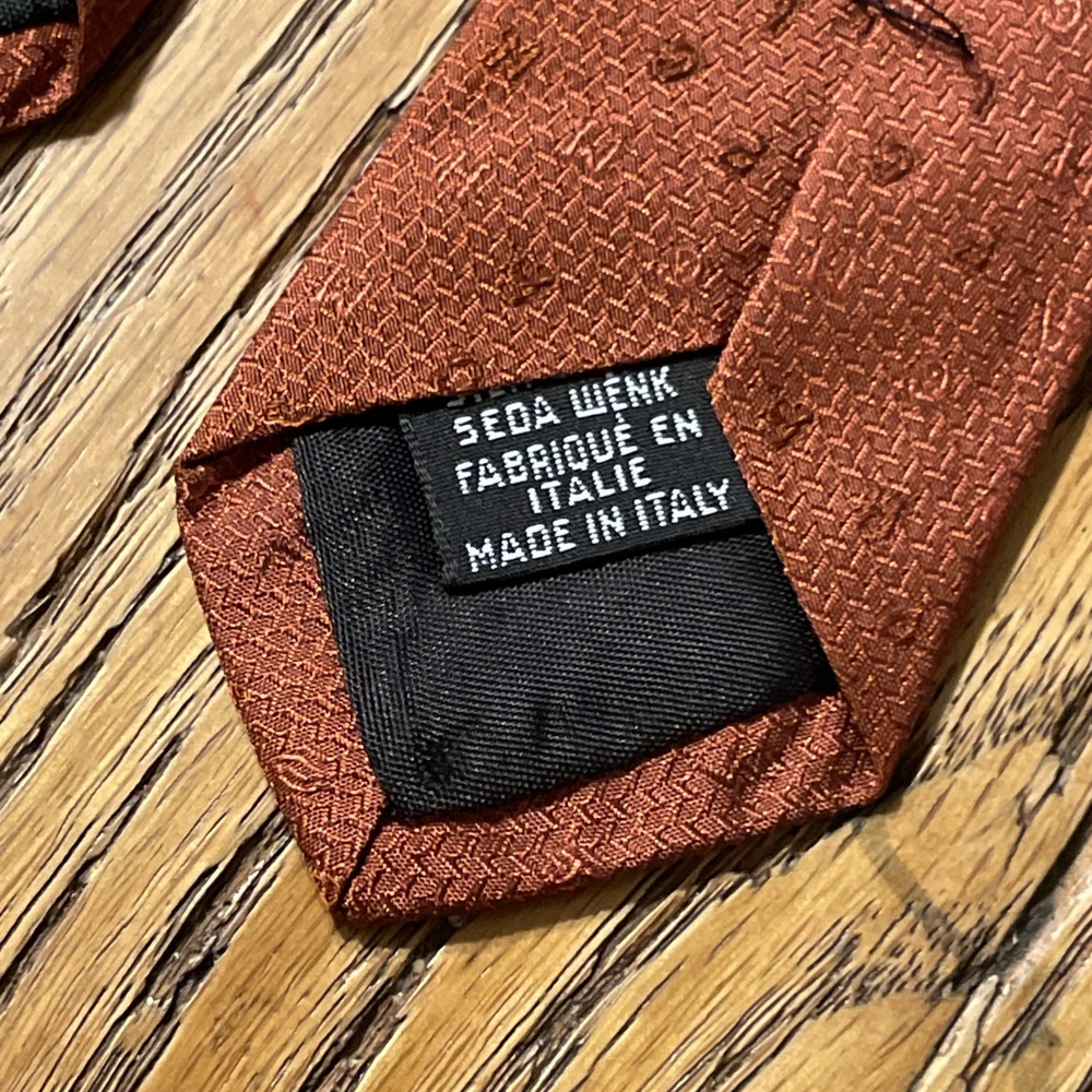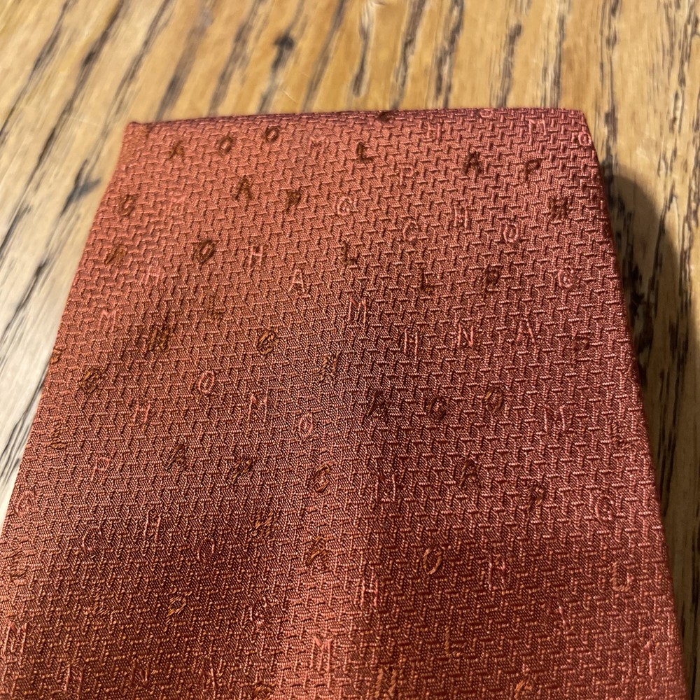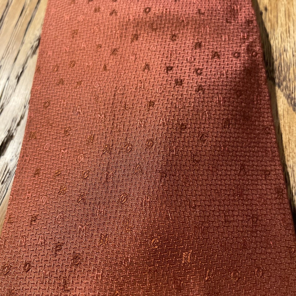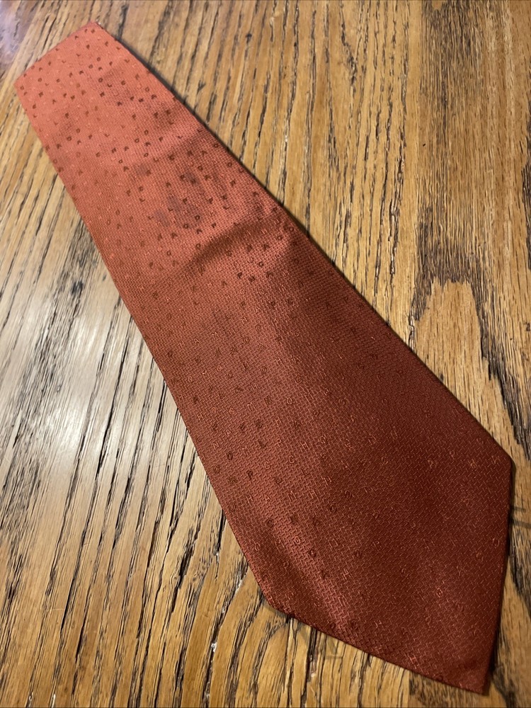 Department: Men Style: Designer Type: Tie Vintage: Yes Item Width: Classic Theme: Preppy Brand: Longchamp Pattern: Scrambled Longchamp Logo Letters Material: 100% Silk Fabric Type: Jacquard Color: Cinnamon Country of Origin: Italy