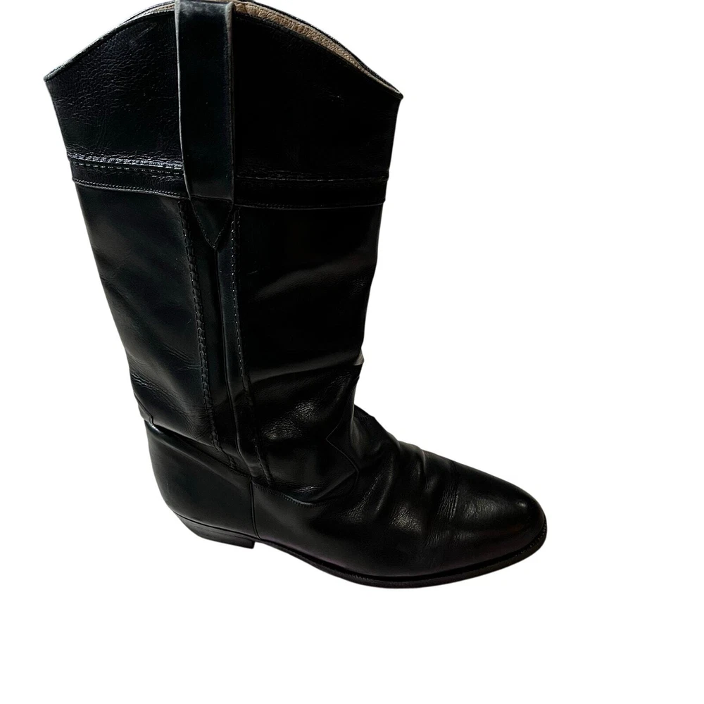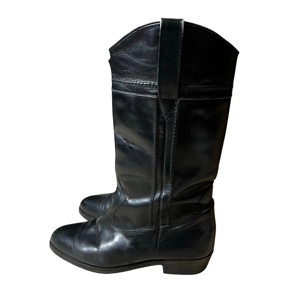 Vintage Longlife Indiana Women's Riding Boot Black Horseback Western No size tag measurement from toe to heal is 10 inches. Regular width with a one inch heel. Excellent Condition. No major flaws detected. These are pre-owned and may show normal signs of wear. Please inspect photos to approve condition. Pictures are of actual items - Pet-free and Smoke-Free home - Open to offers - FAST SHIPPING from Florida westernstyle, westernfashion, wildwest, cowboycore, cowboy, riding, horseback, horseback riding, country, countryboy, rodeo, workwear, ranch, farm, santafe, city, countrygirl, cowgirl, American, Aztec, horse