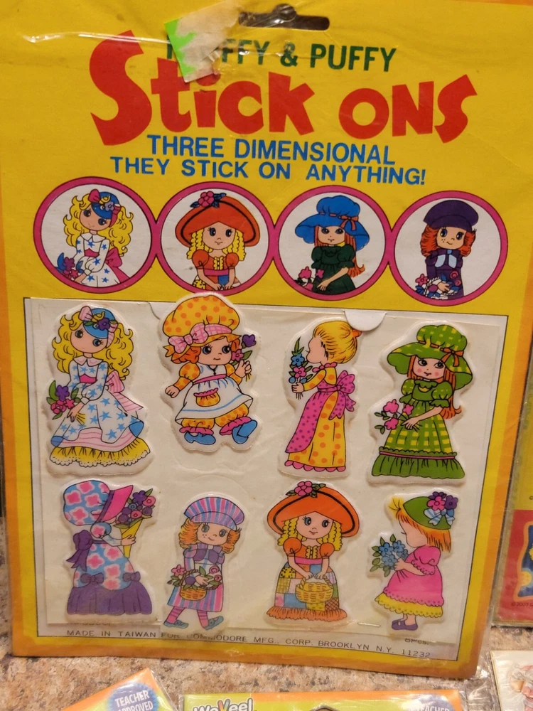 Lot of 7 packs, couple made in Hong Kong, the seal at the top,of the puffy stickers is opened some,shown in pictures.