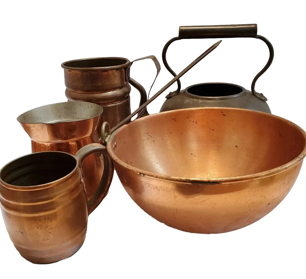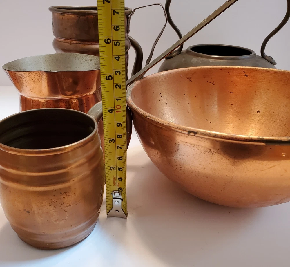 Vintage Solid Copper Lot of 5 -Douro, Old Colony, ODI and Turkart. Tea Kettle Stein, Mug, Bowl Saucepan. Please see pictures for details