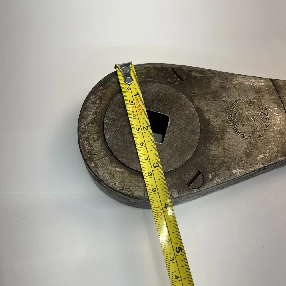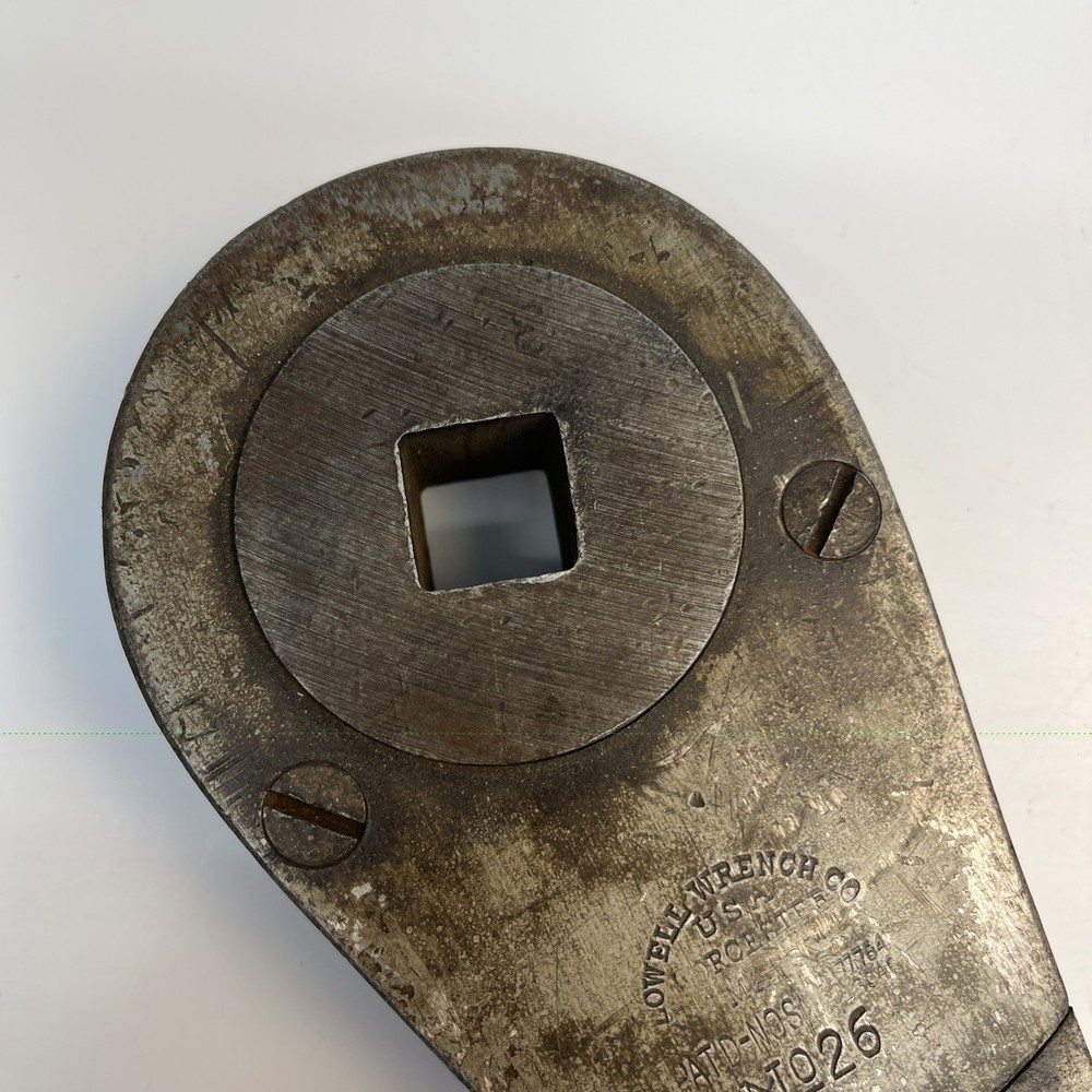 Marked Lowell Wrench Co Worcester Mass USA and No 26. Overall length is 20 in. Total weight is approximately 10 lbs 8 oz. Condition Used vintage condition. Shows surface wear, oxidation, and finish loss from age and use. Head and handle show impact marks and typical industrial wear. Knurled end cap present and intact.