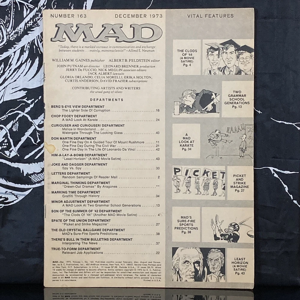 Publication Month: December Publication Year: 1973 Seller Notes: “Read Main Description Provided by Soupy's Retro(:” Genre: History Publication Name: Mad Magazine