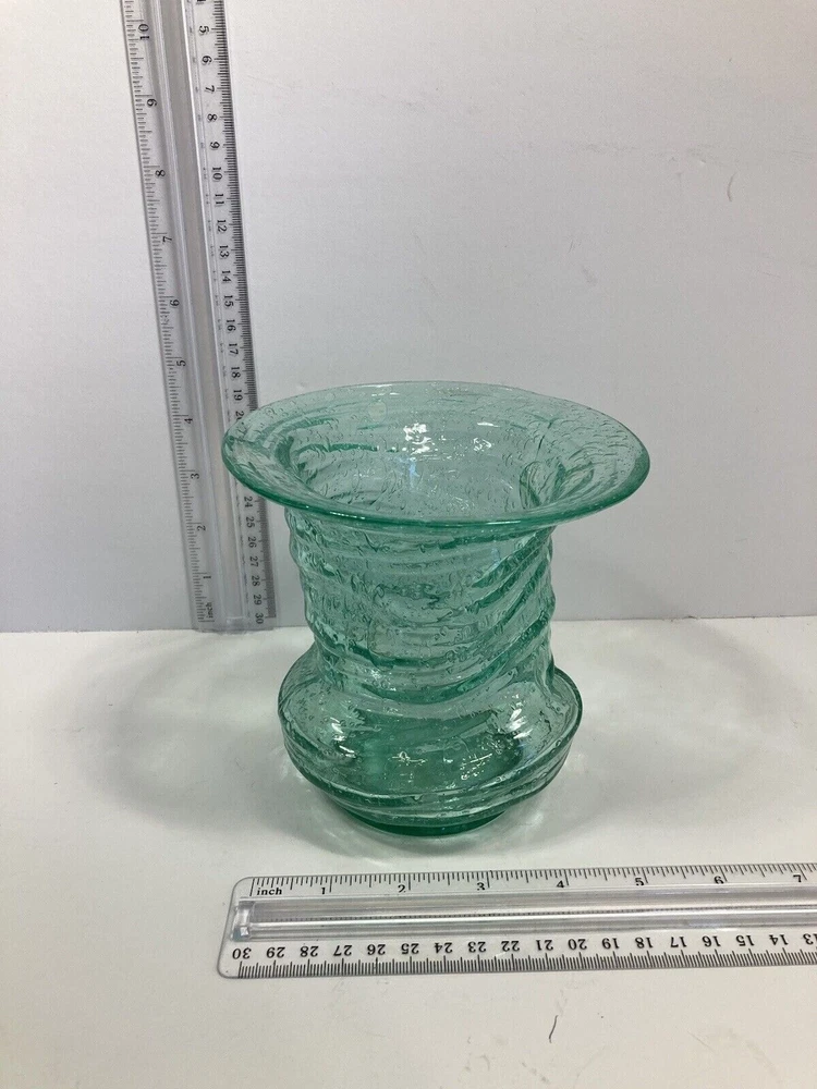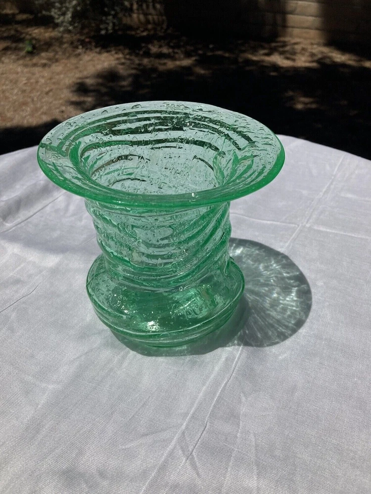 Really unusual piece. Naturally imperfect shape. 5" Wide 5" Tall. They owner had a note stuck to the bottom saying New Jersey Glass. No cracks or chips. Condition Very Good. I'm guessing at the dating of the 60's.