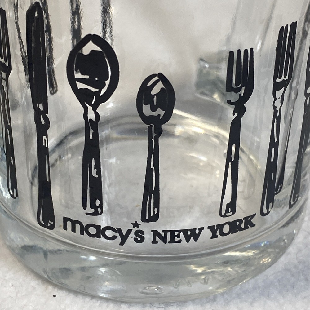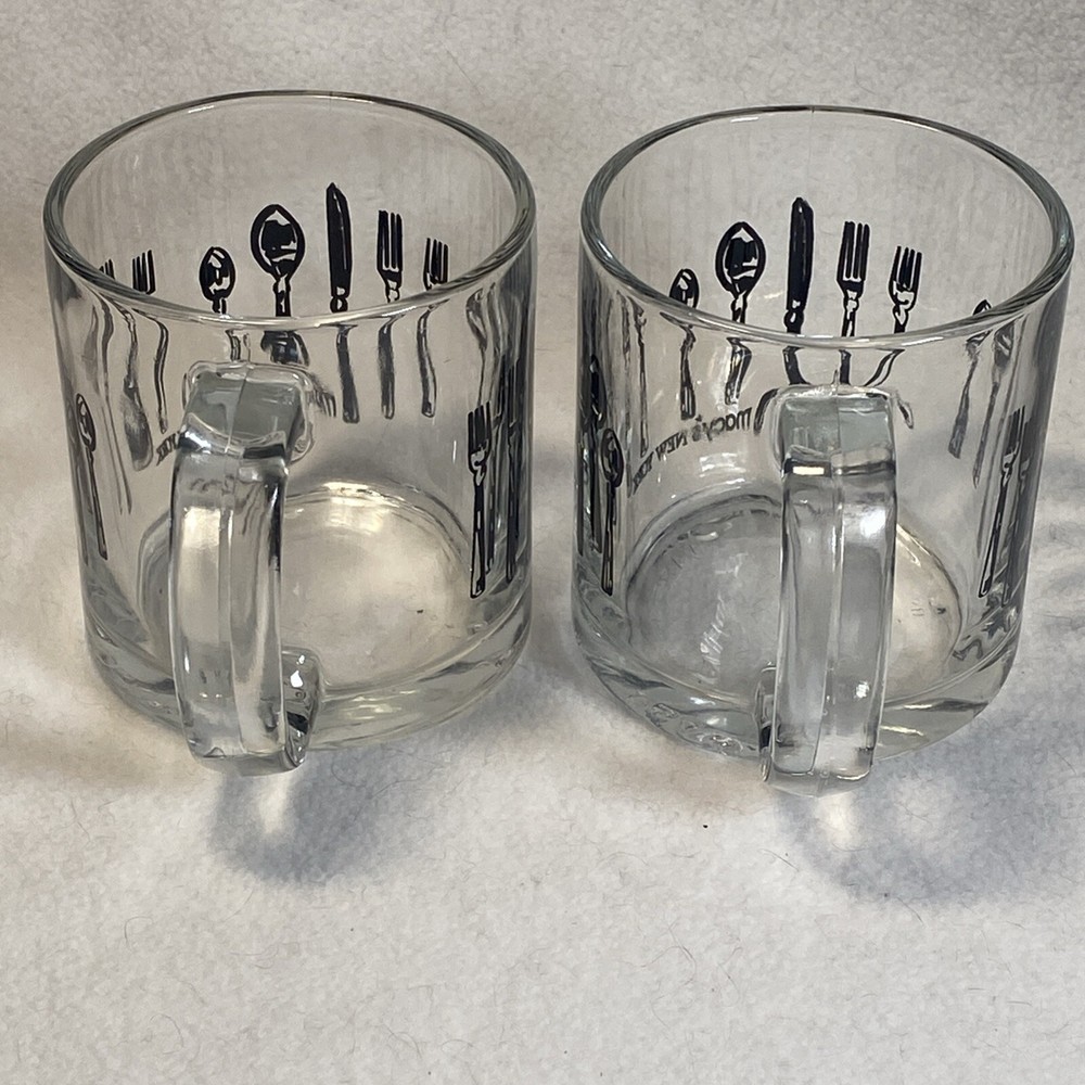 Vintage Macy's MCM Silverware Glass Coffee Mug Set of 2