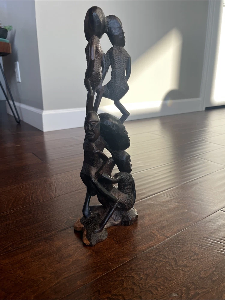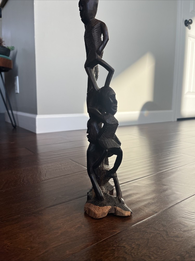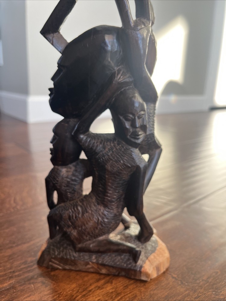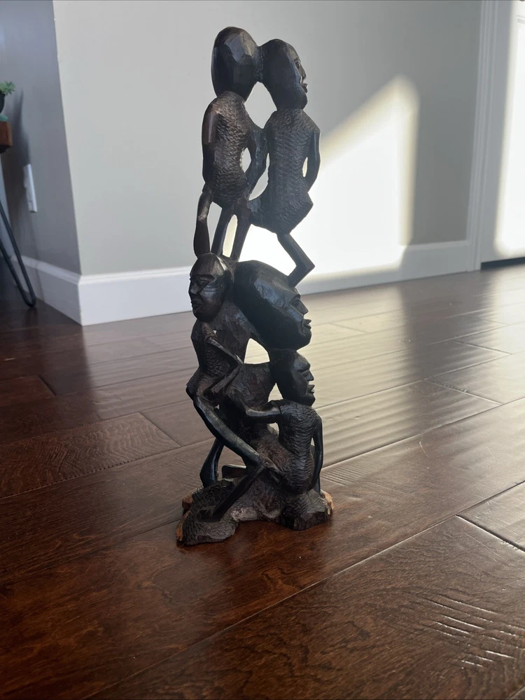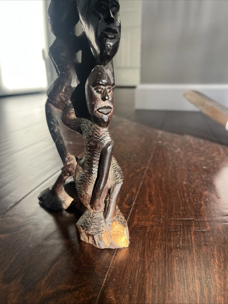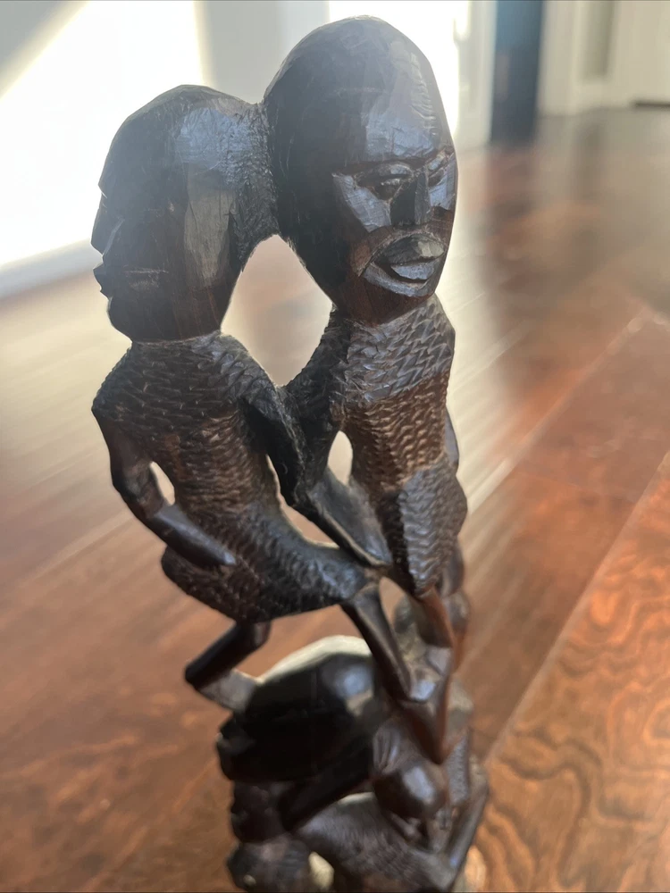 The Vintage Makonde Family Tree Sculpture is a hand-carved piece of African art that showcases the rich culture and heritage of the Makonde people. This unique sculpture depicts the intricate family tree of the Makonde clan, making it a beautiful and culturally significant collectible for enthusiasts of African art and culture. The craftsmanship and artistry of this piece speak to the unique traditions and practices of the Makonde people, making it a valuable addition to any collection of African artifacts.