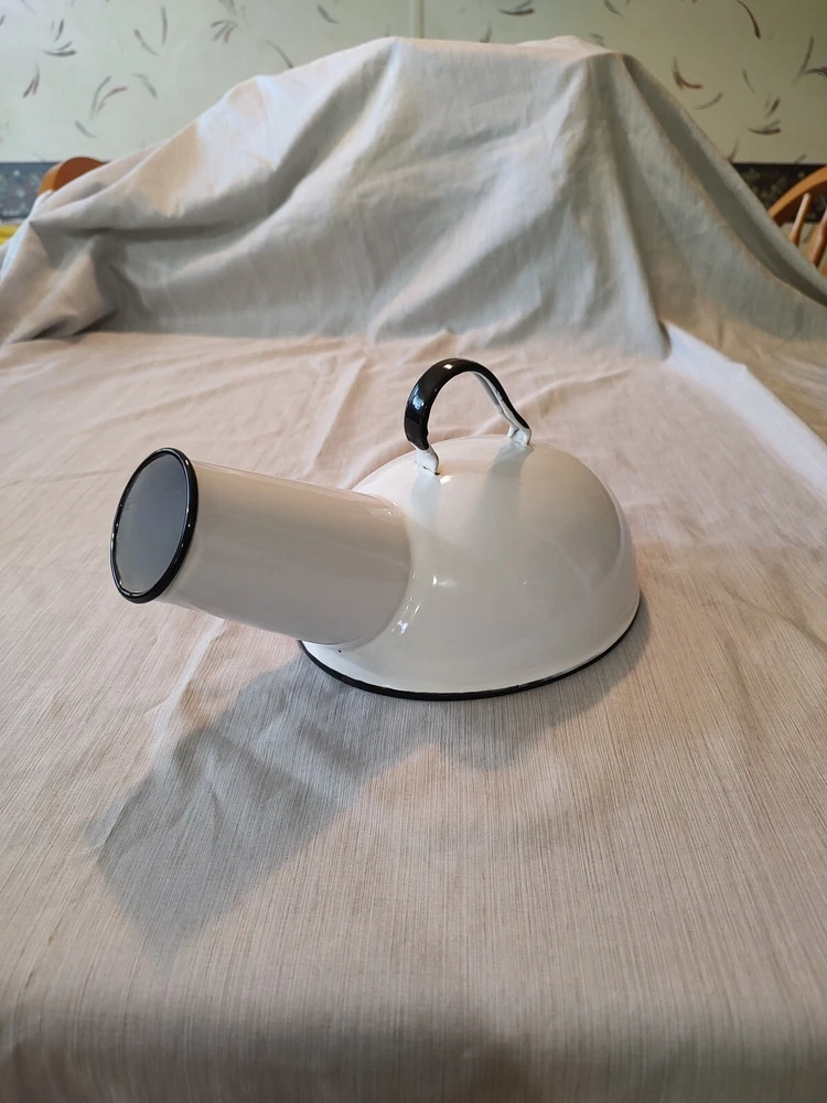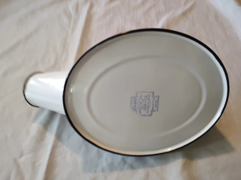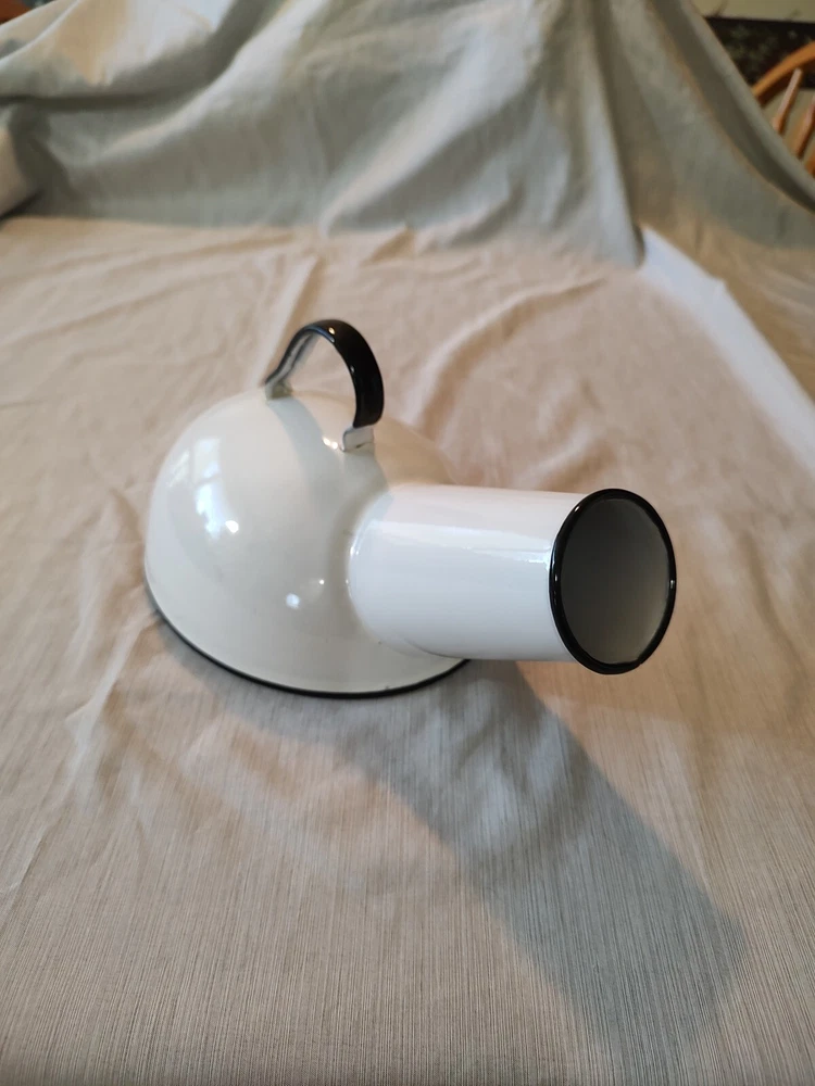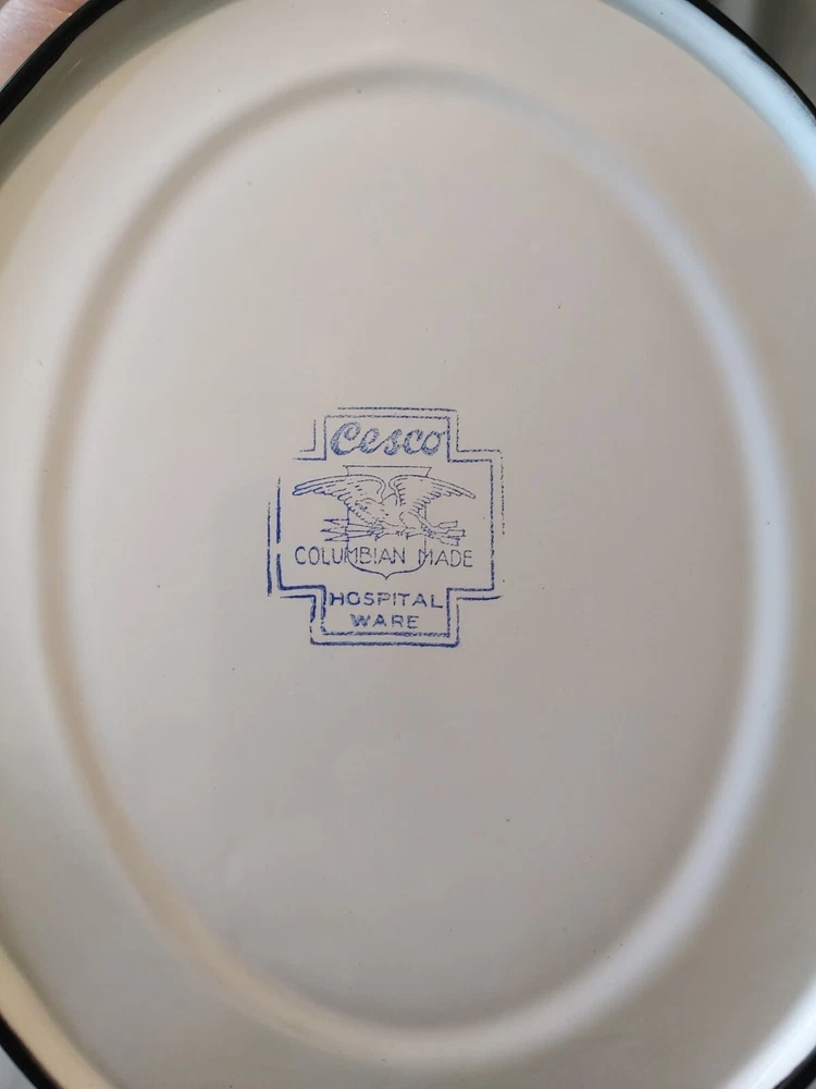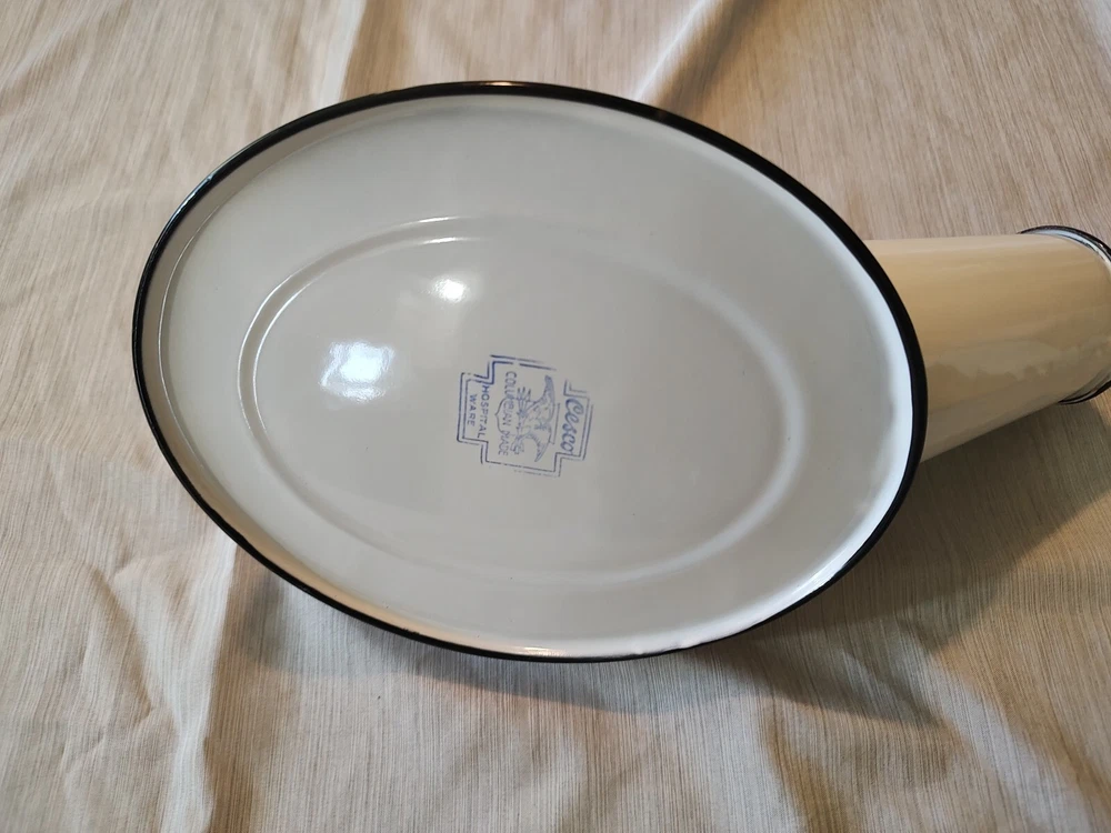 Vintage male urinal white and black enamel. Cesco. Colombian maid mark on bottom. See my other listings for hospital items. Will ship with tracking number and well packaged.