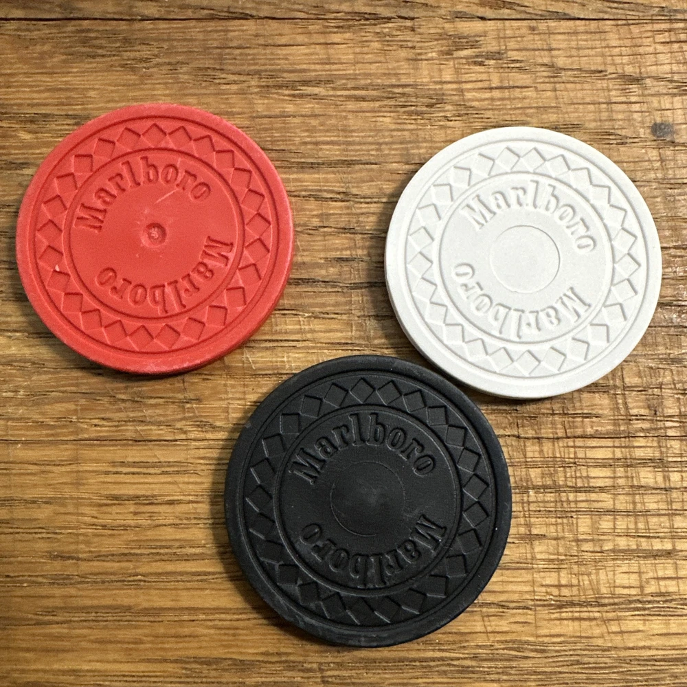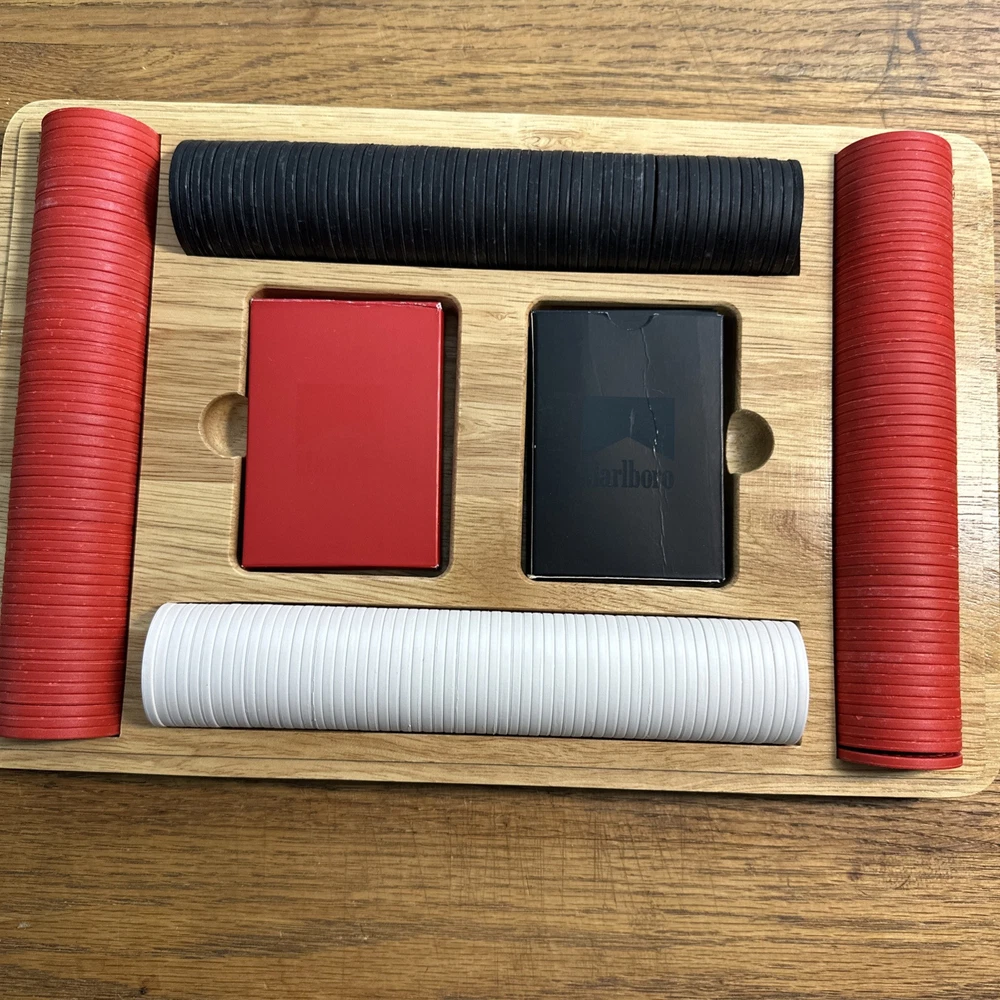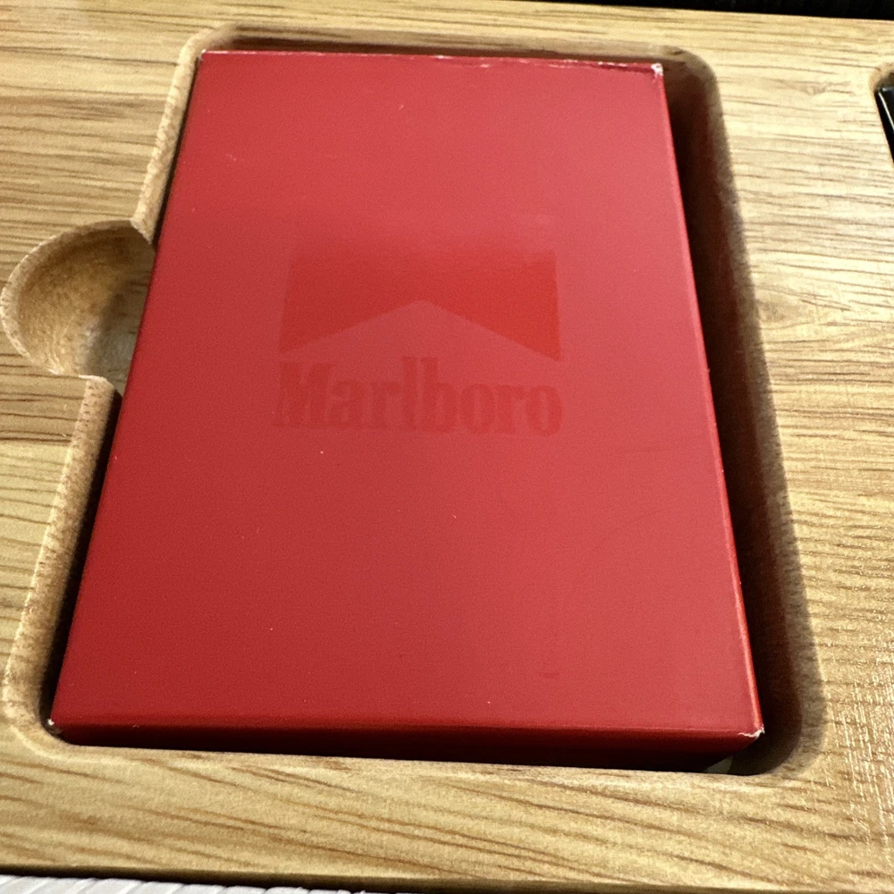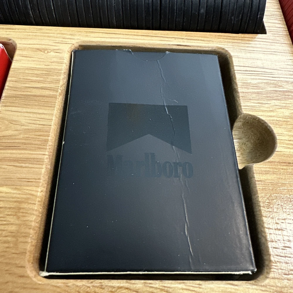 The Vintage Marlboro Poker Set includes poker chips, 2 decks of playing cards, and a wooden case, providing a complete set for a classic poker game. The poker set features the iconic Marlboro branding, adding a touch of nostalgia to the gaming experience. With its vintage appeal and comprehensive inclusion of essentials for poker play, this set is sure to be a prized addition to any collection or a functional set for game nights. Contents: Wooden Box containing- 60 black chips 60 white chips 120 red chips 2 decks of cards (open boxes, but do not appear to have been played with) Pre-owned condition. See photos. 2 Sealed Decks of Eli Cutter Playing Cards Included. Just for fun.