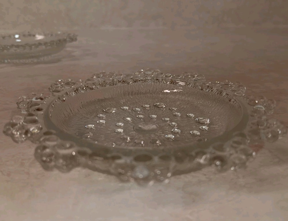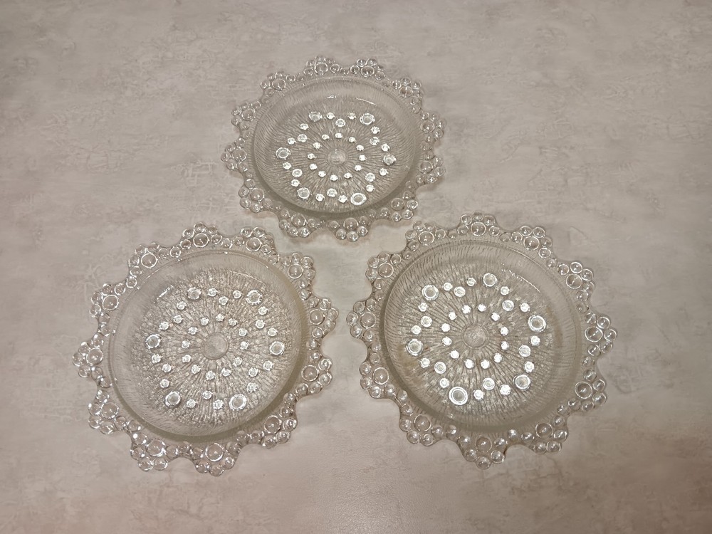 Fantastic condition! These three trinket dishes are a thing of beauty with their bubble lace design. Approx Dimensions Edge to Edge: 4.5" Diameter Inside: 3.25" Height: .75"