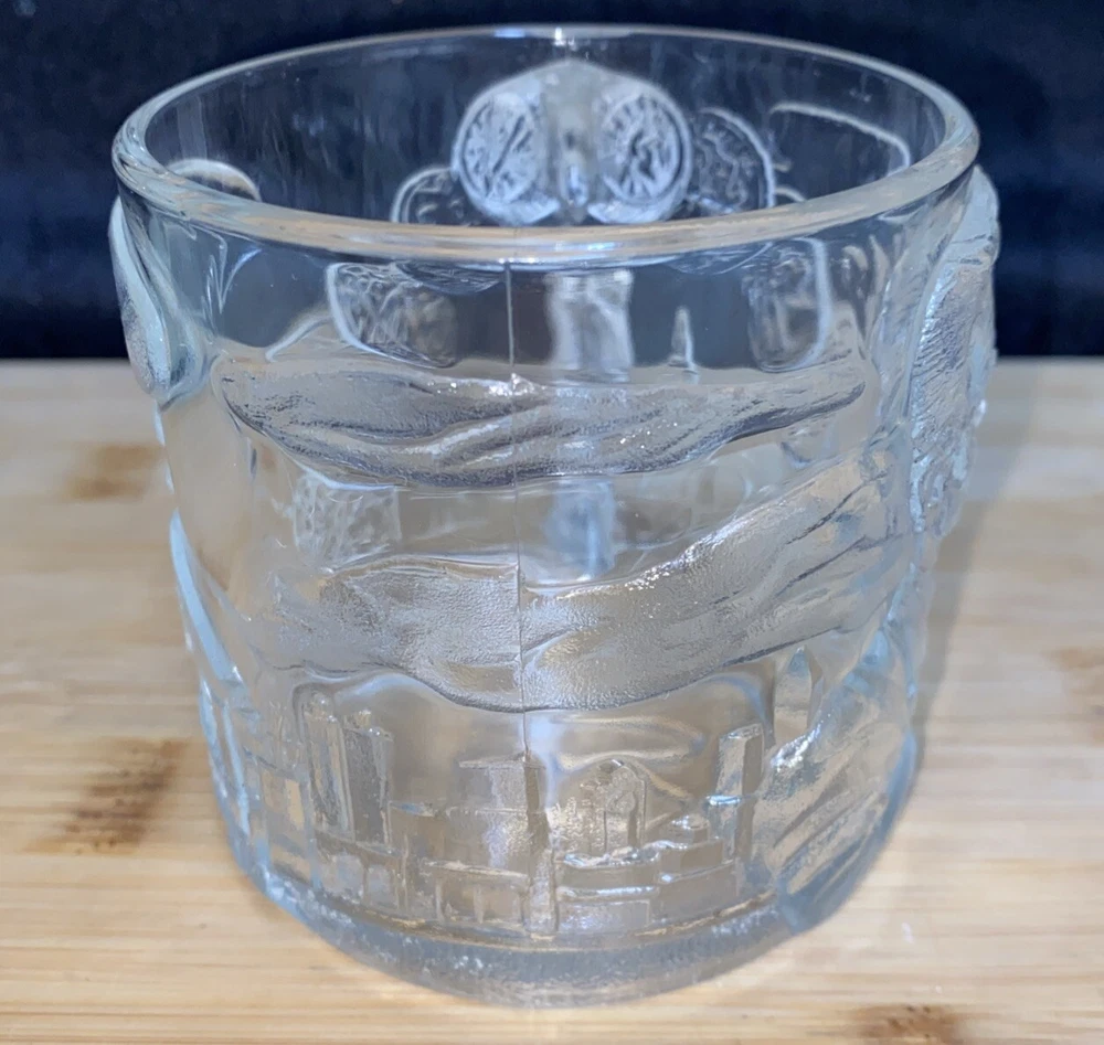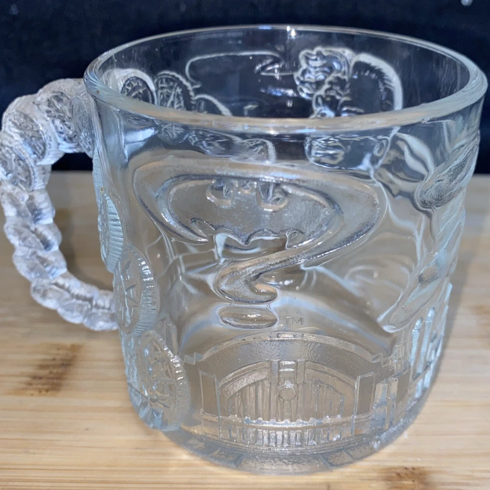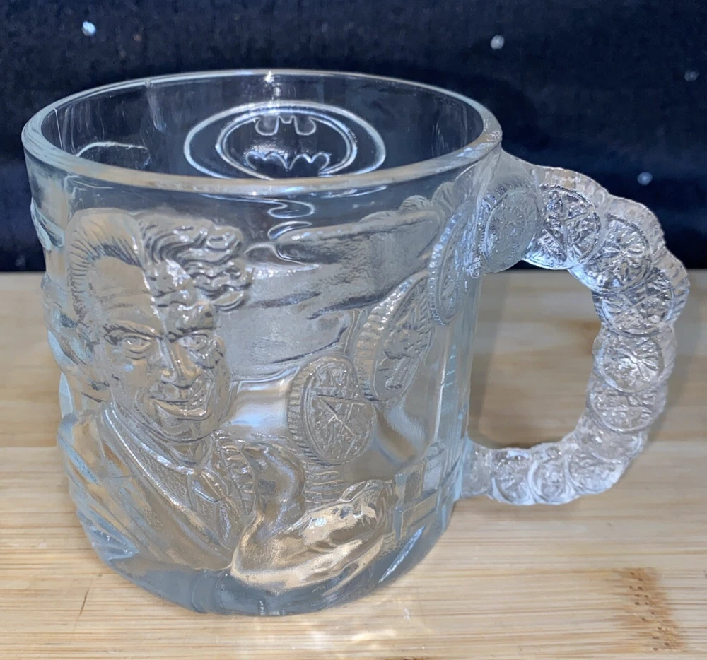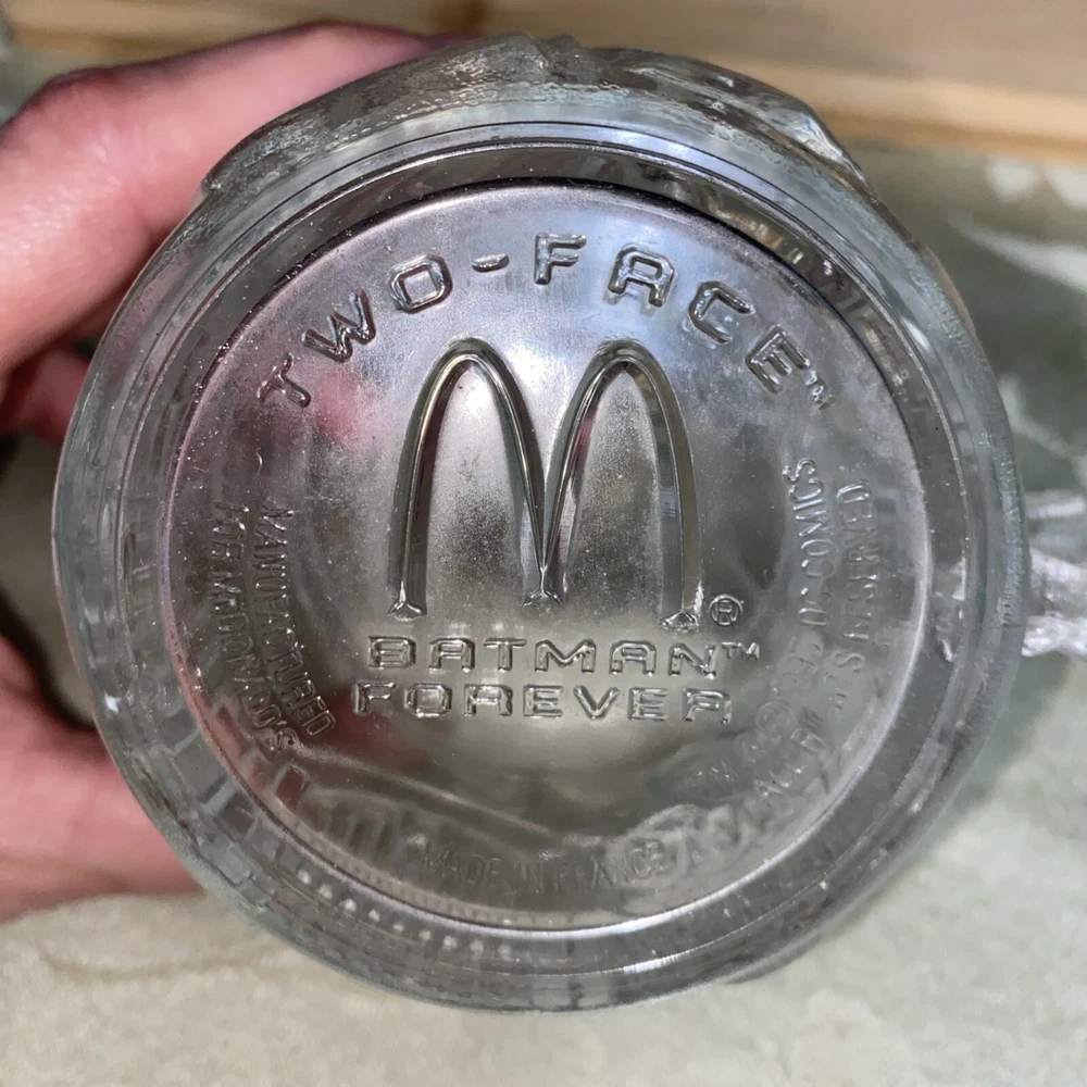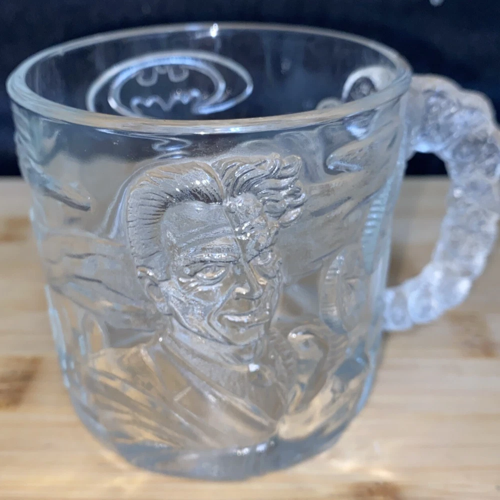 Vintage Mc Donalds Glass Mug Batman Forever Two Face Clear 3D Cup 10 fl oz VTG