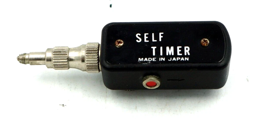 This is a used, in excellent working condition, Vintage Mechanical Self Timer Camera Shutter Release. Made in Japan. Adjustable pin depth for different cameras / delays.