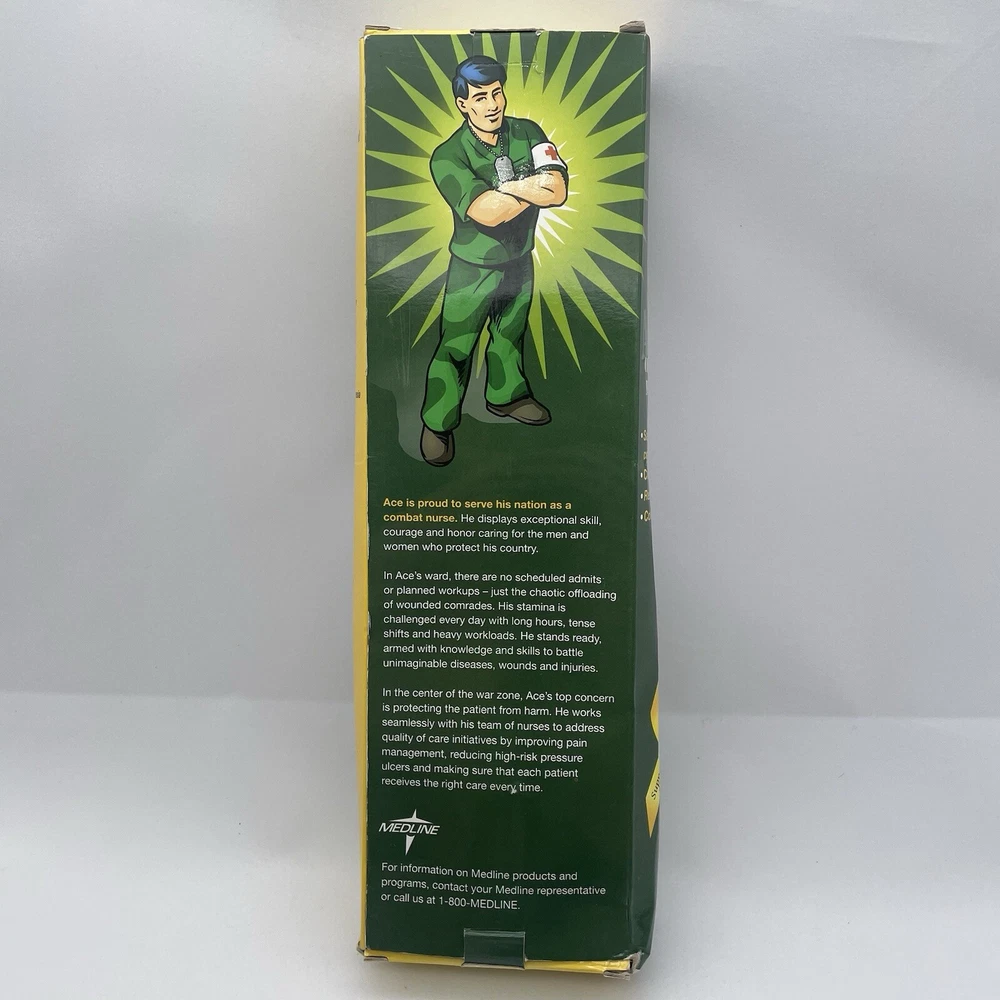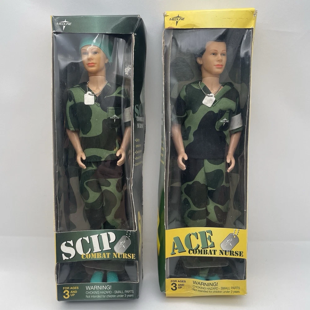 Introducing the Medline ACE/SCIP COMBAT NURSE Action Figures, perfect for fans of Military & Adventure toys. These original, licensed reproduction action figures are made of durable plastic and feature the iconic Ace Scip character. Ideal for collectors and enthusiasts alike, these action figures are sure to impress. With a focus on detail and quality, the Medline ACE/SCIP COMBAT NURSE Action Figures are a must-have for any fan of the Military & Adventure theme. Featuring the beloved Ace Scip character, these original action figures are perfect for adding to your collection or for use in imaginative play. Made with high-quality materials, these action figures are built to last and are sure to provide hours of entertainment. Dolls don’t appear to be played with but the boxes are heavily damaged. Shown in pictures.