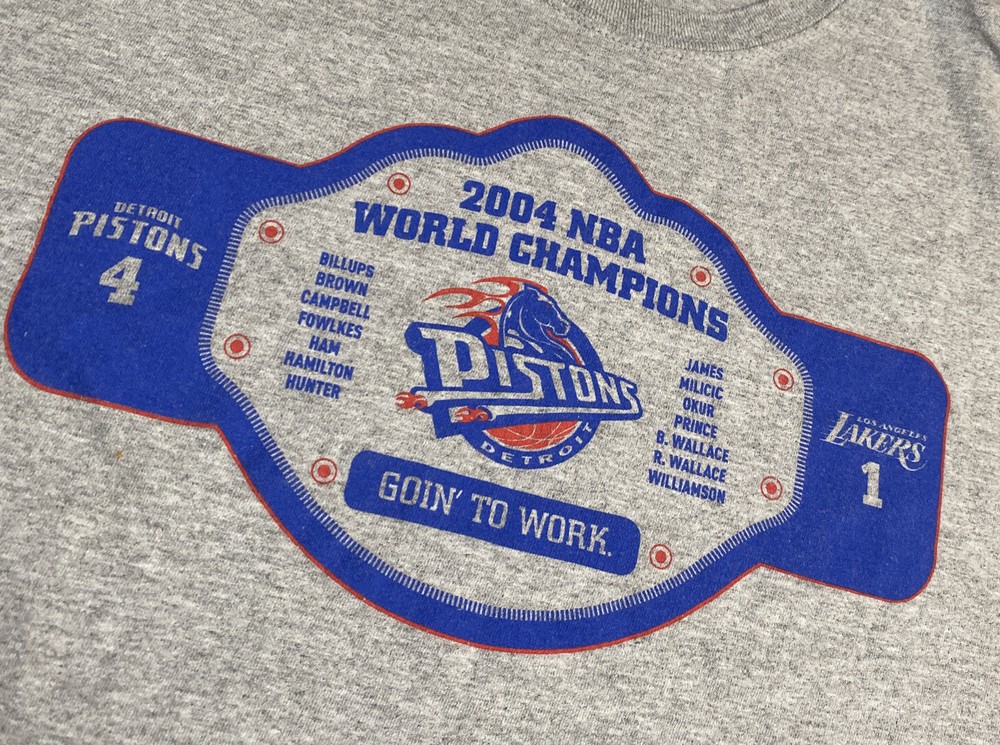 Show off your love for vintage style and basketball with this gray Detroit Pistons 2004 NBA World Champions tee. This pre-owned shirt features short sleeves and a regular fit, perfect for any casual occasion. Open to offers so send away!