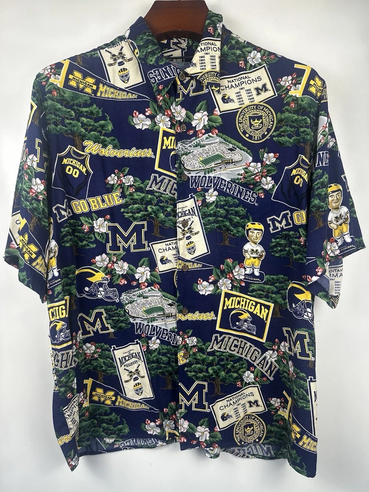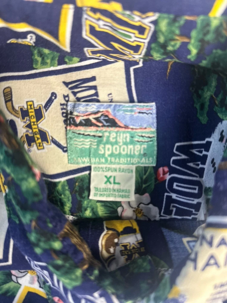 Vintage Reyn Spooner Hawaiian Shirt Mens XL Michigan Wolverines Button Up Adult. Condition is Pre-owned. Shipped with USPS Ground Advantage.