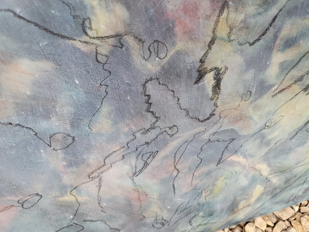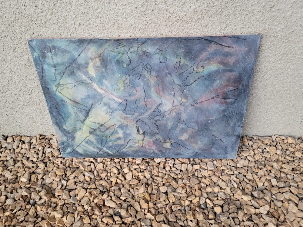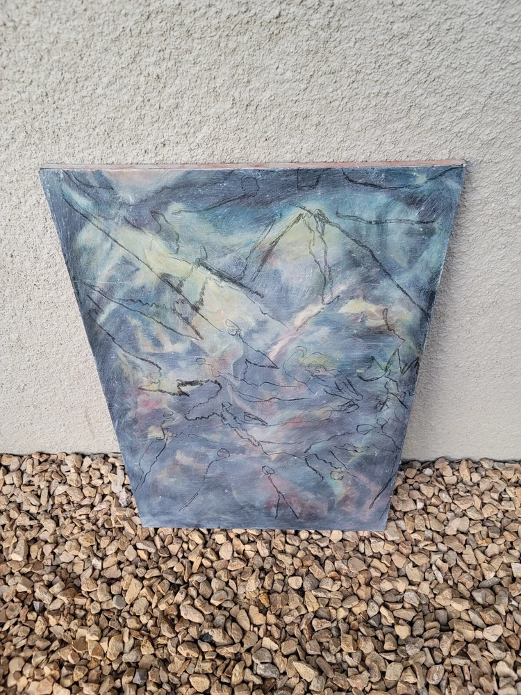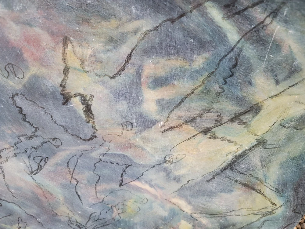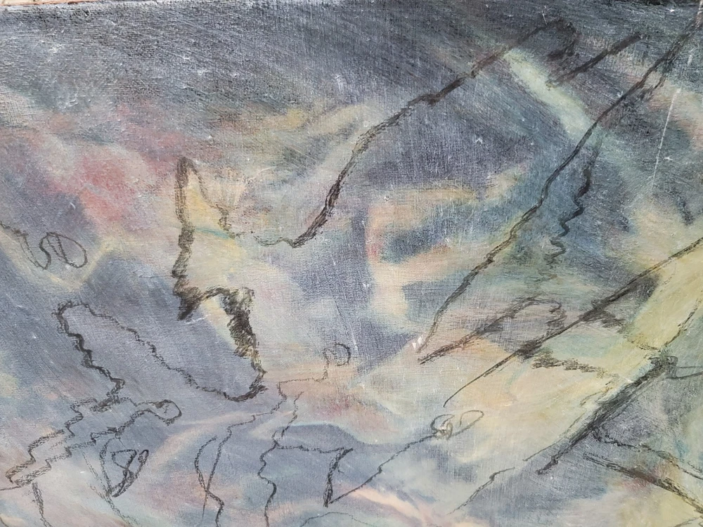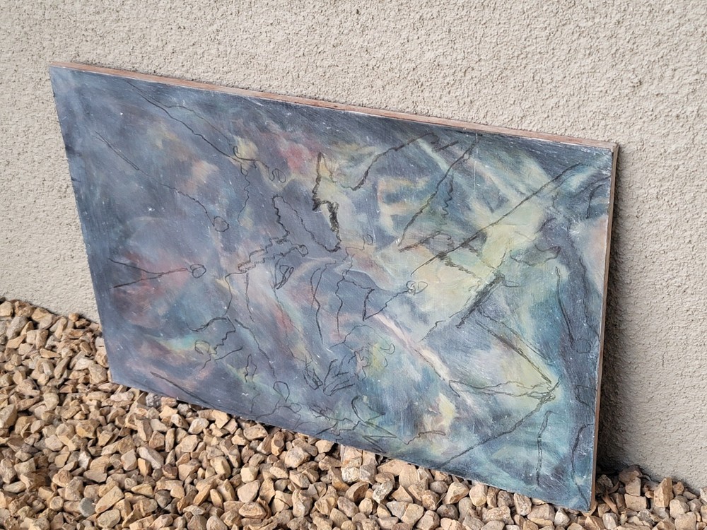 This is one of my very favorite vintage original Mid Century finds from Palm Springs. Appears to be from the 1950's or 1960's. Unsigned but obviously painted by an artist of the period of some significance. The oil on canvas painting measures about 30 x 20 inches. In good vintage condition but you will notice a few specks and scratches on the canvas from age and wear. No punctures but one near miss, as shown in the photos. I can see the spirit of Chagall and Picasso in this piece. There were no clues as to how the artiste meant for it to be hung so I have photographed it in varying positions.