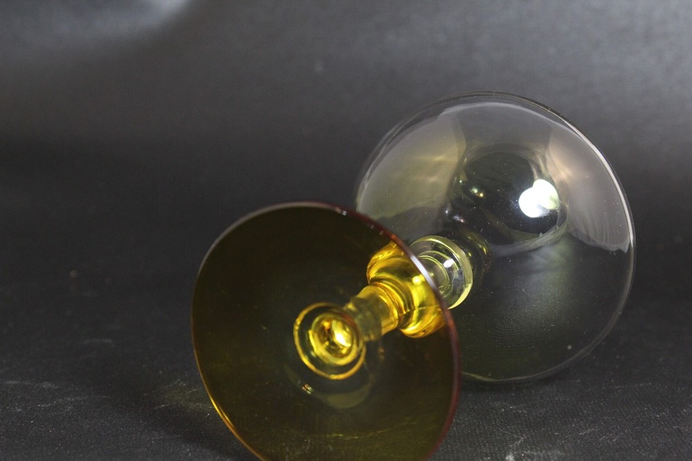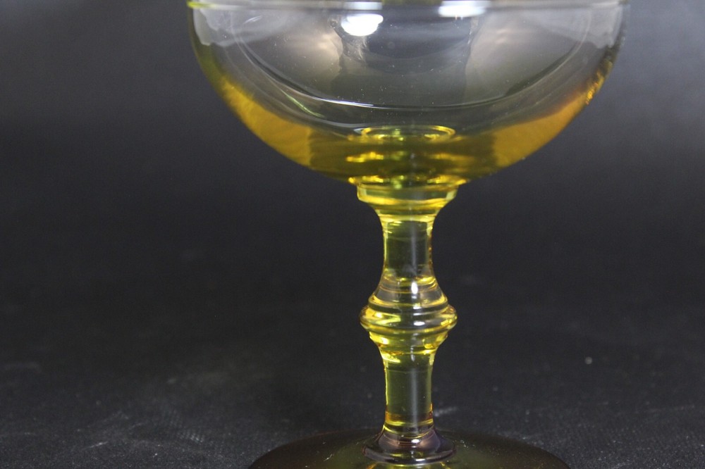 Elevate your toasting experience with the vintage mid-century Libbey Forever Amber Champagne Glass. Exuding a timeless elegance, this glass boasts the iconic Forever Amber pattern that has been cherished for generations. The rich yellow hue adds a warm, inviting touch to your celebratory moments, making it a standout addition to any barware collection.Crafted with precision during the 1940s to 1960s, this piece is a testament to Libbey's commitment to quality and style. The Georgian-inspired design harmonizes with various decor themes, while the glass material ensures durability and a classic feel. Whether you're hosting a special event or enjoying an intimate evening, this champagne glass is sure to impress.