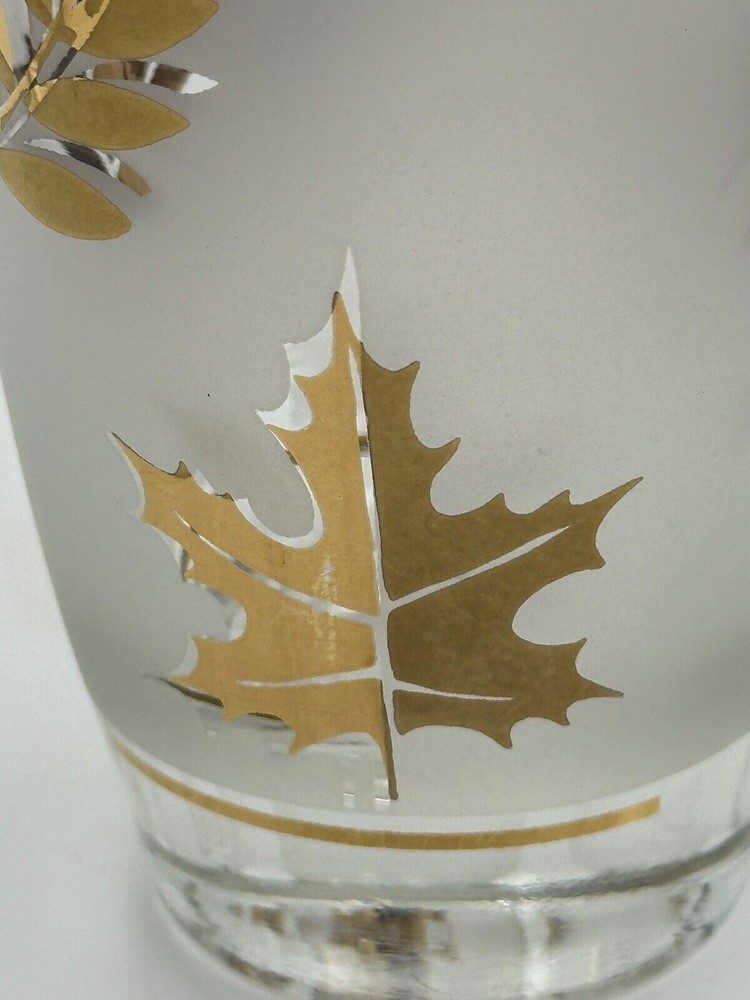 Vtg MCM Libbey Frosted Gold Leaf Golden Foliage Glasses 12 Oz Set Of (7) 4.5” Great condition with some of the gold rubbed off. I have taken pictures of each spot/place.