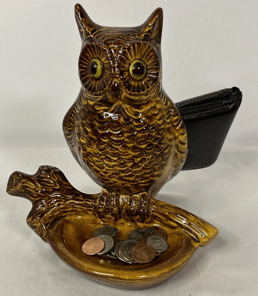 This charming vintage owl valet tray is both stylish and functional! The midcentury design adds a retro touch to any dresser, and the sturdy porcelain construction feels high-quality. I love how it keeps my wallet, keys, and loose change organized while showcasing the artist’s unique craftsmanship. The signature and California markings make it a special collector’s piece. Perfect for anyone who appreciates MCM decor with personality!