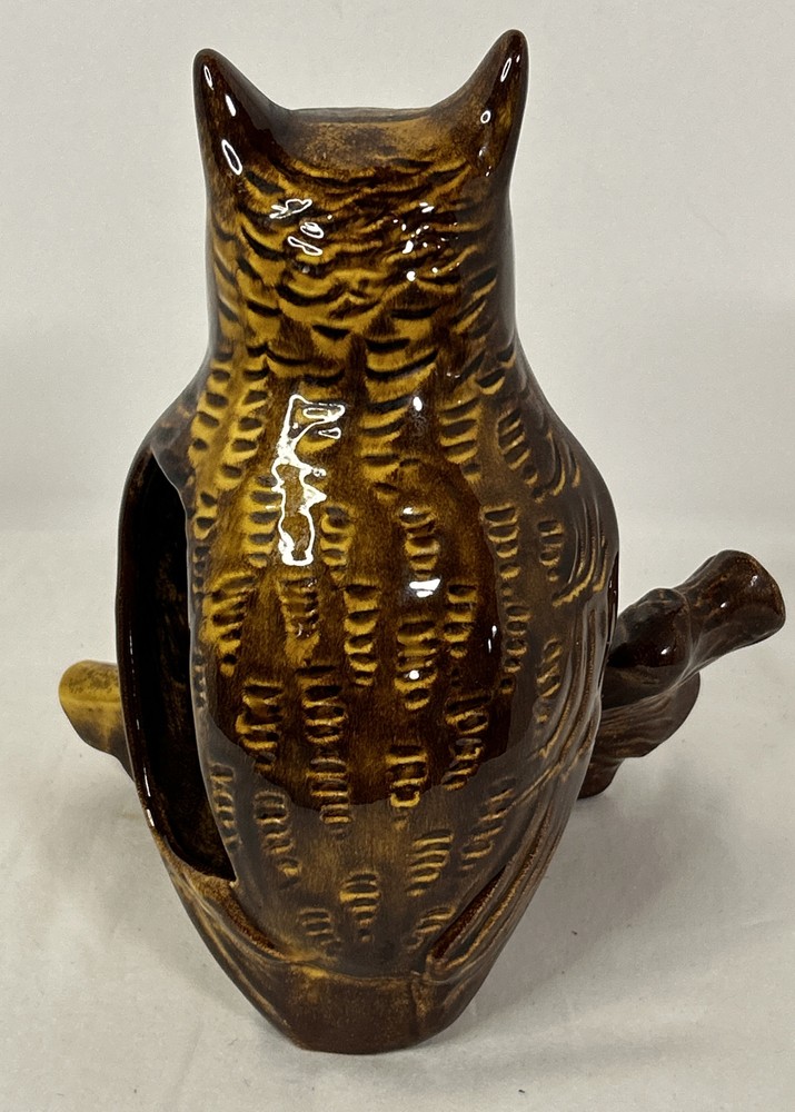 This vintage midcentury modern style Owl on Branch Porcelain Dresser Valet with Wallet Holder and Trinket Tray is a very unique piece. It is signed by the artist (Kenna Linda?) and marked Calif. U.S.A. 9046 on the bottom. This piece is about 8” inches tall, 7” inches wide and about 6” inches deep. This timeless unique piece is the perfect accessory to hold your wallet and whatever else you may have stored in your pockets during the day. Vintage MCM California Pottery Owl on Branch Dresser Valet Trinket Tray Signed is in excellent vintage pre-owned condition, with NO chips, cracks or repairs. However, it does have some paint loss. Please review all pictures for proper assessment of its excellent vintage pre-owned condition.