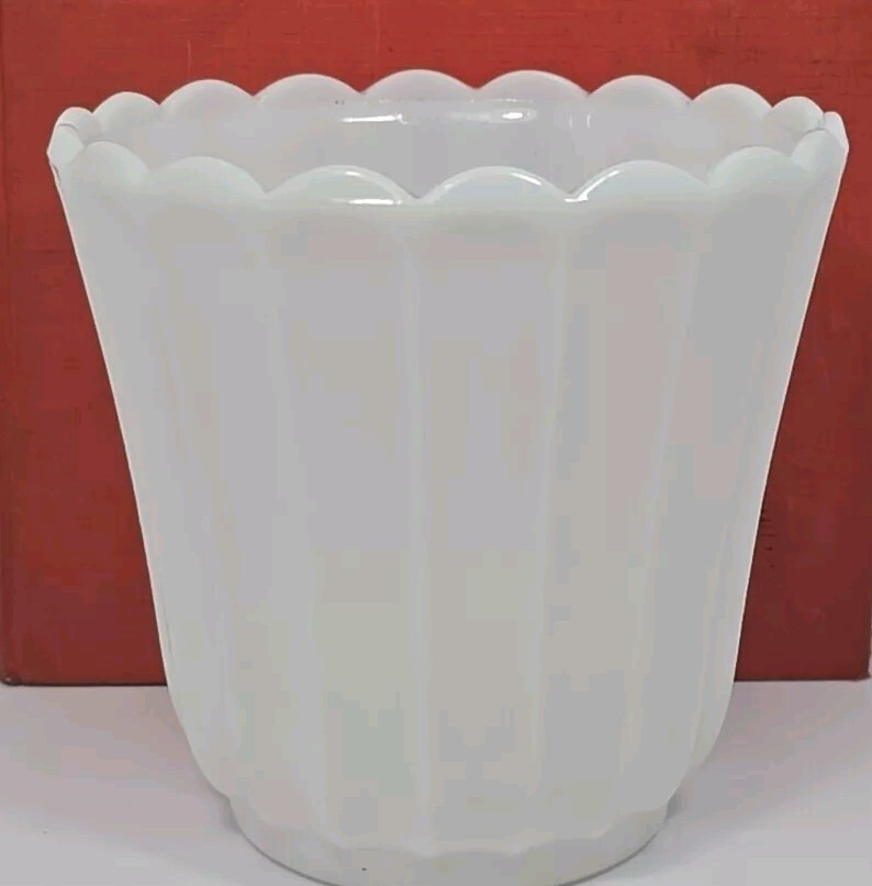 Vintage Mid-Century Milk Glass Flower Pot or Vase with Scalloped Rim 5 Inches