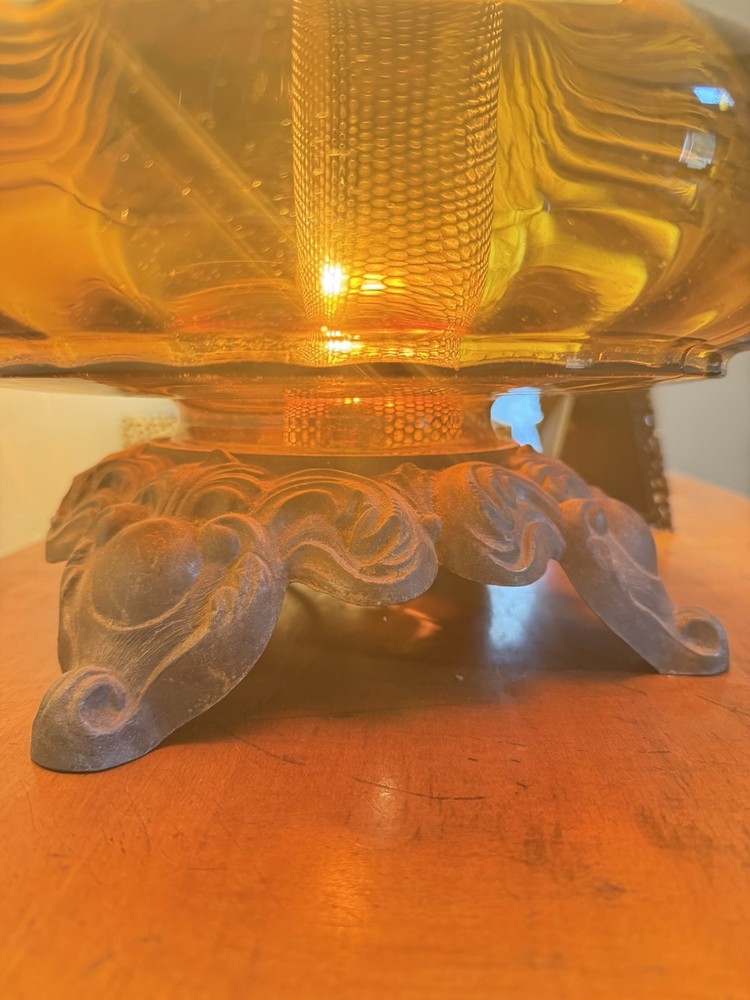 This vintage Mid-Century Modern Falkenstein amber glass 3-way table lamp No chips or cracks. Shipped with care, pick up or meet up within reason.