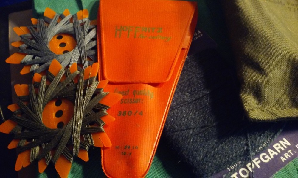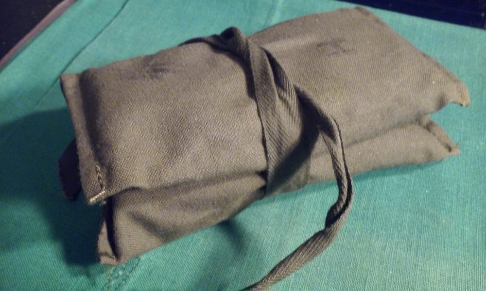 Vintage Military? Sewing Kit full contents in green cloth wrap pouch.