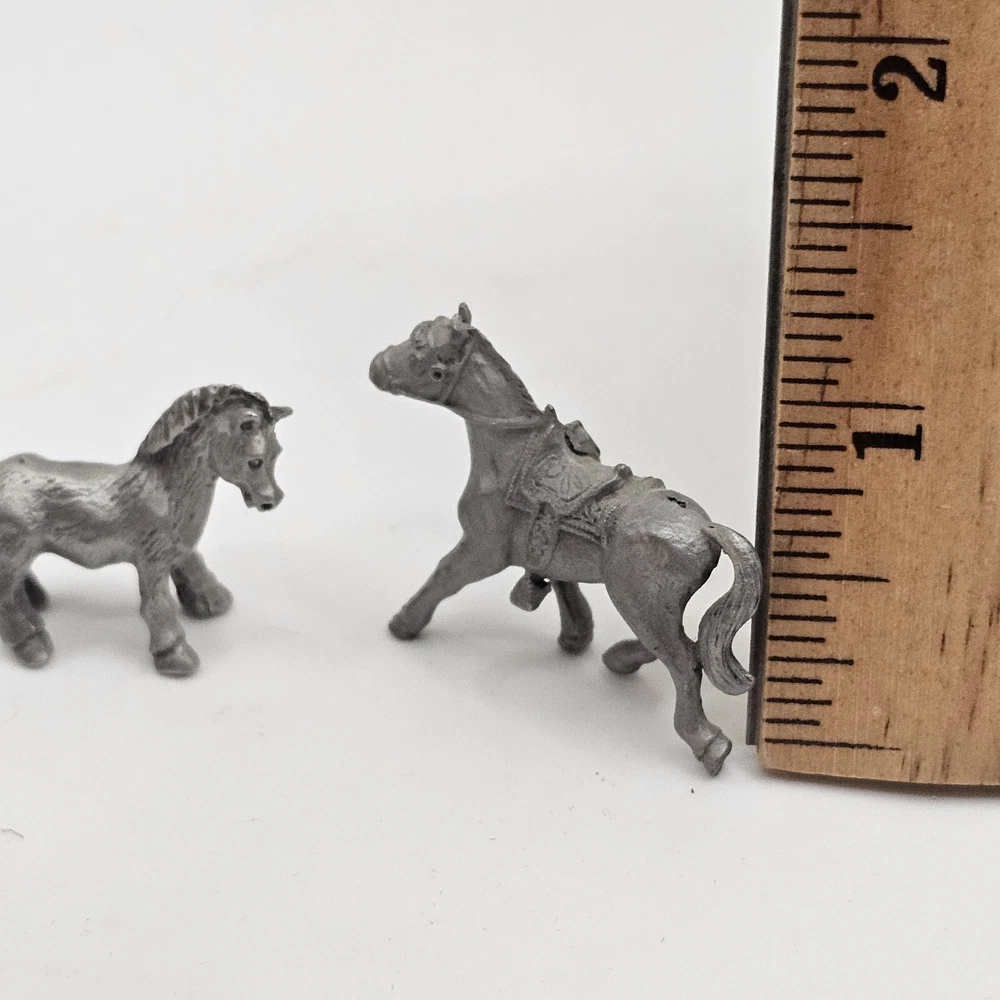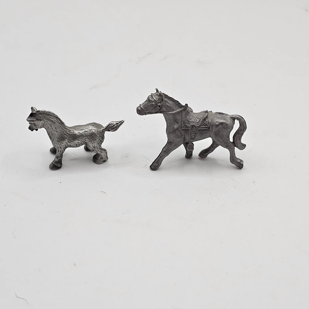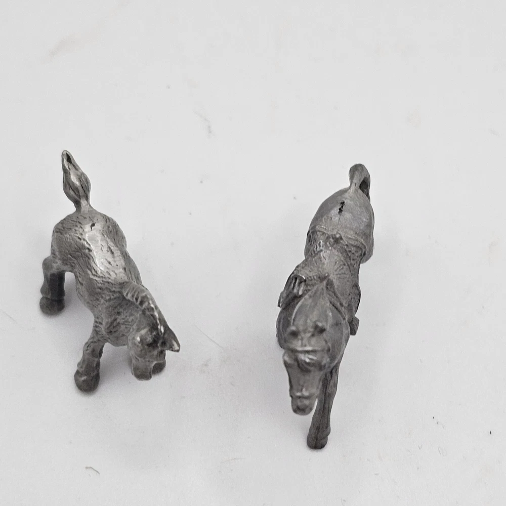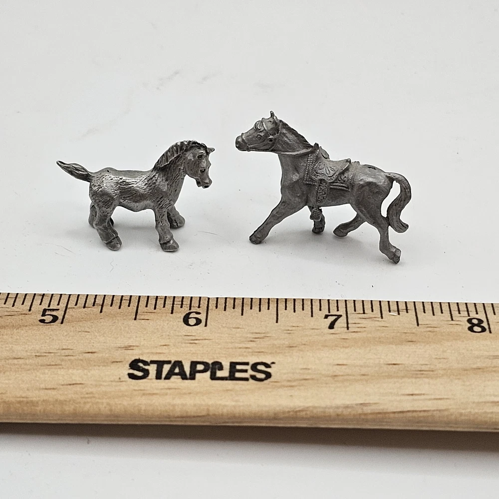This set of two miniature pewter figurines is a must-have for any horse lover's collection. The intricate details of these foals are sure to impress, from their delicate manes to their sturdy hooves. Crafted from high-quality pewter, these figurines are built to last and will make a charming addition to any display. Whether you're a seasoned collector or just starting out, these miniature horses are a great way to add some charm to your home decor. Perfect for any room in your house, these figurines are sure to be a conversation starter. Don't miss out on the opportunity to own these delightful decorative collectibles.