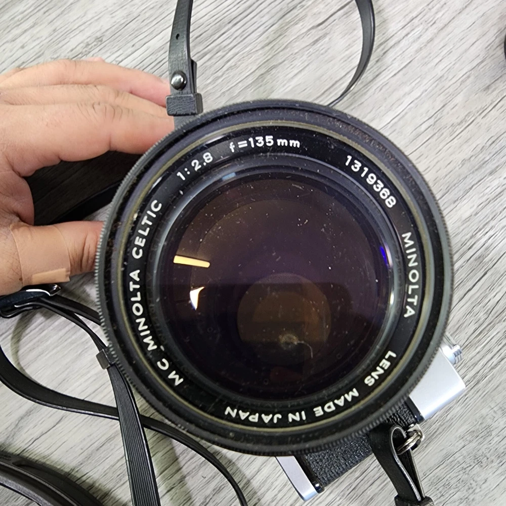 Vintage Minolta SRT202 35MM SLR Film Camera Shutter Tested Lens Bag Bundle *Read. In used condition please see pictures for details. The shutter works. It has 2 lens and a flash. Camera has a ding in thr one corner. Comes with bag and manuals. Bag is not great very dusty and bottom is seperated. Manuals are also dingy looking. Cool vintage film camera set.