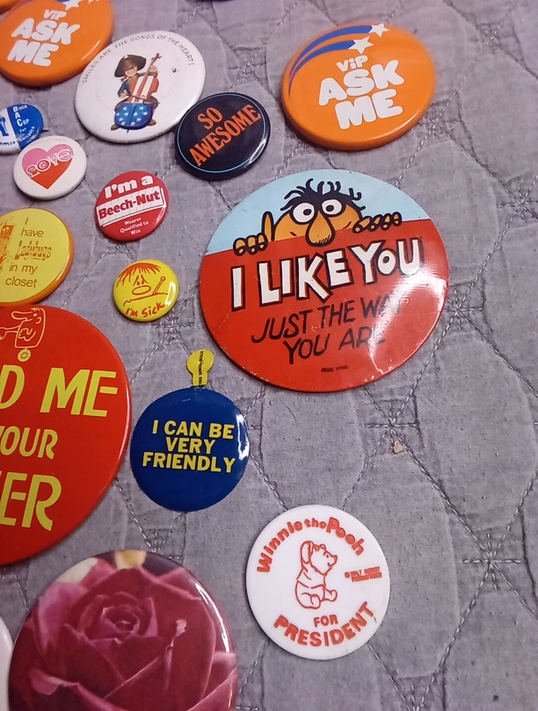 Vintage Mixed Lot Of 27 Pin Back/Pinback/Button/Badge