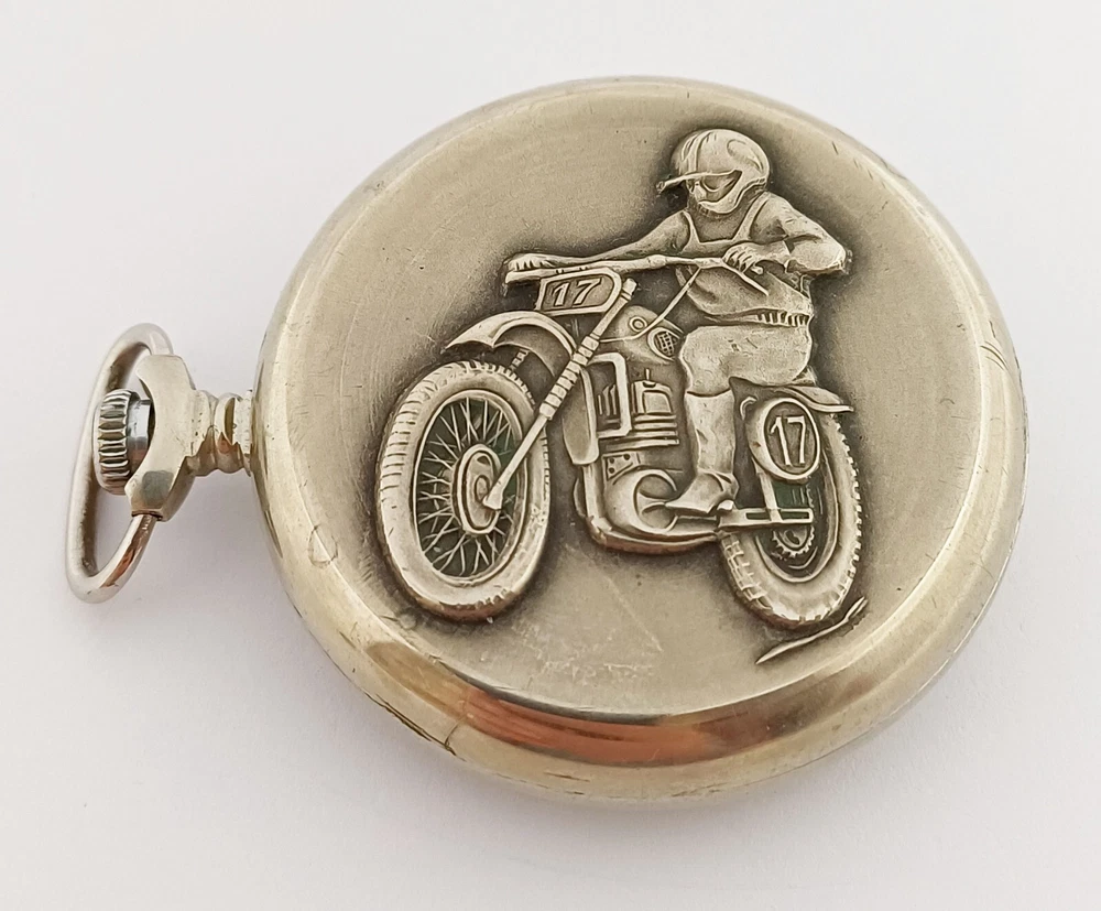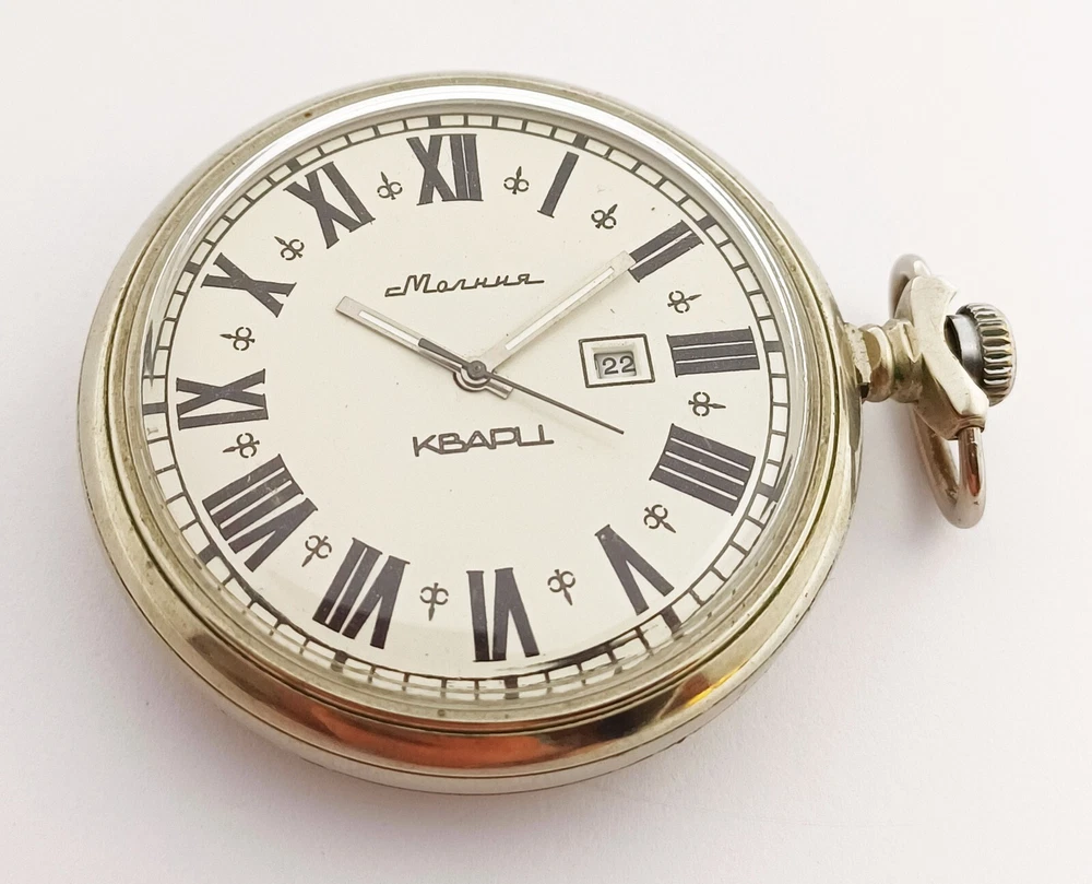 Molnija Motorcyclist Molnia Vintage Soviet Russian Quartz Pocket watch Case size (without crown) - 50 mm Dial size - 42 mm Case thickness - 15 mm 100% mechanical watch Vintage Soviet watches are highly sought after by collectors and enthusiasts due to their historical significance and unique designs. Collecting vintage Soviet watches can be a fascinating hobby, allowing you to own a piece of history while appreciating the craftsmanship and design of these timepieces. The watch has been serviced by a watchmaker and is in excellent working condition. Shipping Items are shipped worldwide by airmail with a tracking number. Delivery period US, Europe - 10-15 business days Australia, New Zealand - 20-30 business days Other countries - 10-20 business days