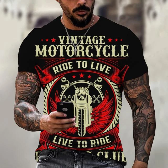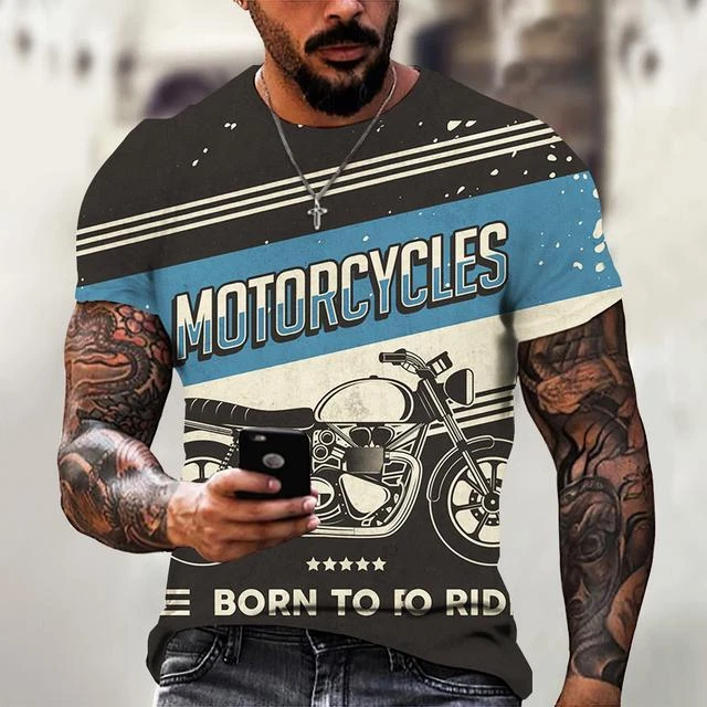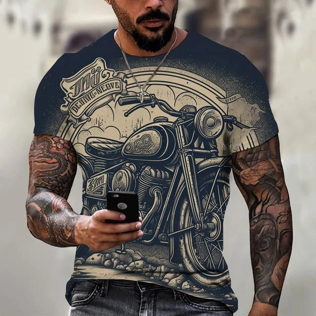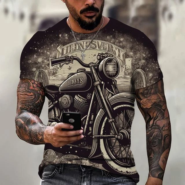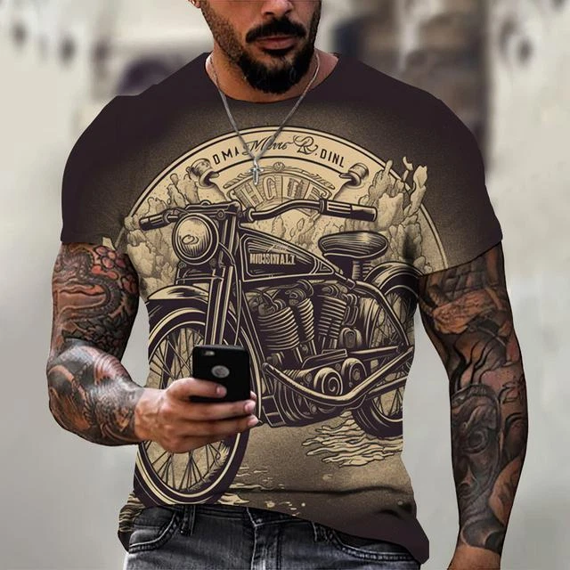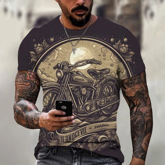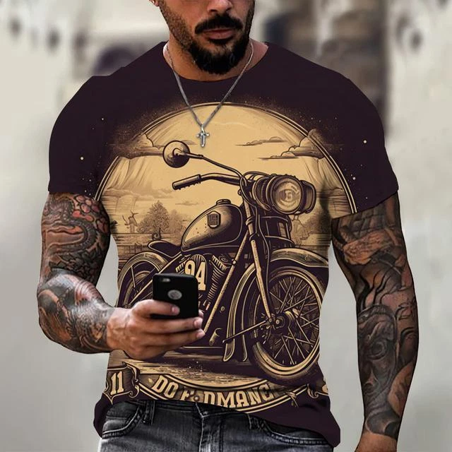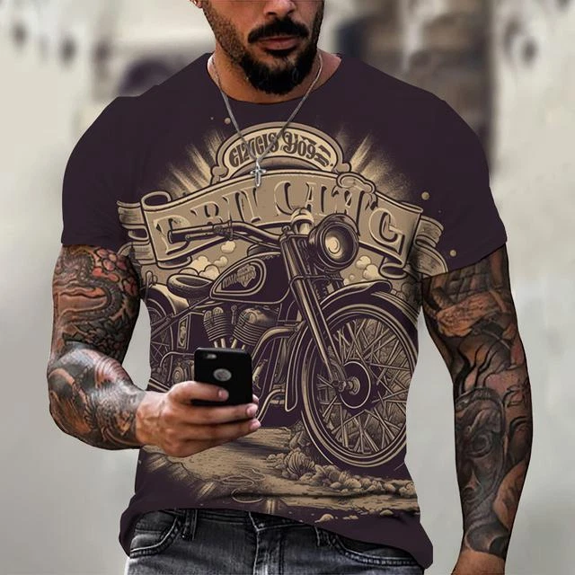 Ride in Style: Men's Vintage Motorcycle Graphic Print T-Shirt Hit the open road with this cool and stylish men's t-shirt, featuring a vintage motorcycle graphic print that will make you feel like you're riding back in time. This tee is a statement piece for any motorcycle enthusiast or anyone who loves a touch of retro flair. Crafted from a comfortable polyester blend, this short-sleeve shirt is perfect for everyday wear. Whether you're cruising on your bike, exploring the city, or just hanging out with friends, this stylish and comfortable tee will keep you looking and feeling great. Key Features: Nostalgic Vintage Motorcycle Graphic Print: A captivating design that celebrates the classic era of motorcycles. Short Sleeves: Ideal for warm weather and everyday wear. Round Neckline: Classic and stylish for any occasion. Regular Fit: Ensures a comfortable and flattering look. Machine Washable: Easy care for hassle-free maintenance. More than just a t-shirt, it's a statement. Make a bold fashion statement with this unique and eye-catching tee. Available in a variety of sizes to ensure the perfect fit. Don't miss out on this opportunity to add some personality to your wardrobe! Additional Details: Theme: Biker Character: Biker Character Family: Biker Material: Polyester Blend Pattern: Graphic Print Size Type: Regular Vintage: Yes Country/Region of Manufacture: China Accents: Print Fabric Type: Broadcloth Product Line: Men's Graphic Print T-Shirt Top Vintage Motorcycle Design Sizes X Personalize: Yes Handmade: No Garment Care: Machine Washable Style: Casual Sleeve Length(cm): Short Item Type: Tops T-shirt Style: Tees Collar: O-neck Pattern Type: Print Process: 3d Print Get yours today and cruise in style! Please kindly note that, sizes are Asian sizes, Usually 1-2 sizes smaller than EU, UK, US, & AU sizes depending on the fit you are after.