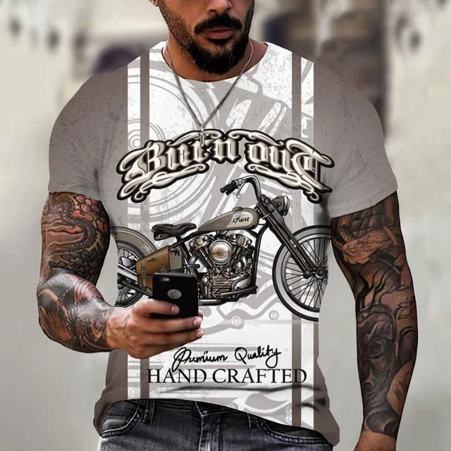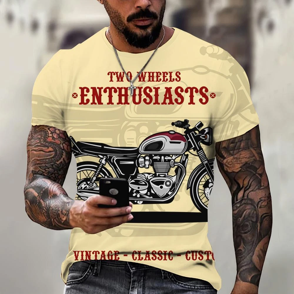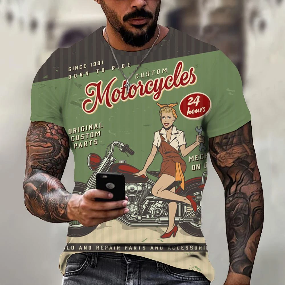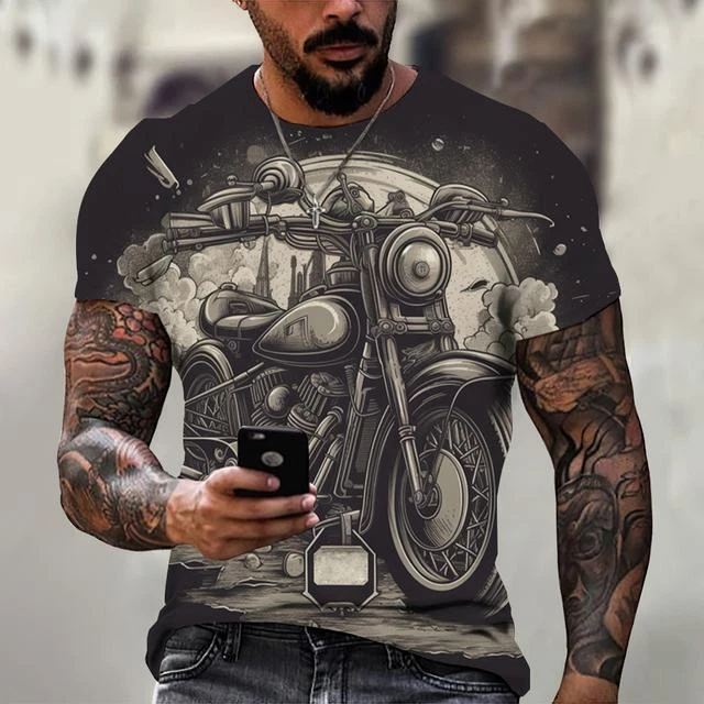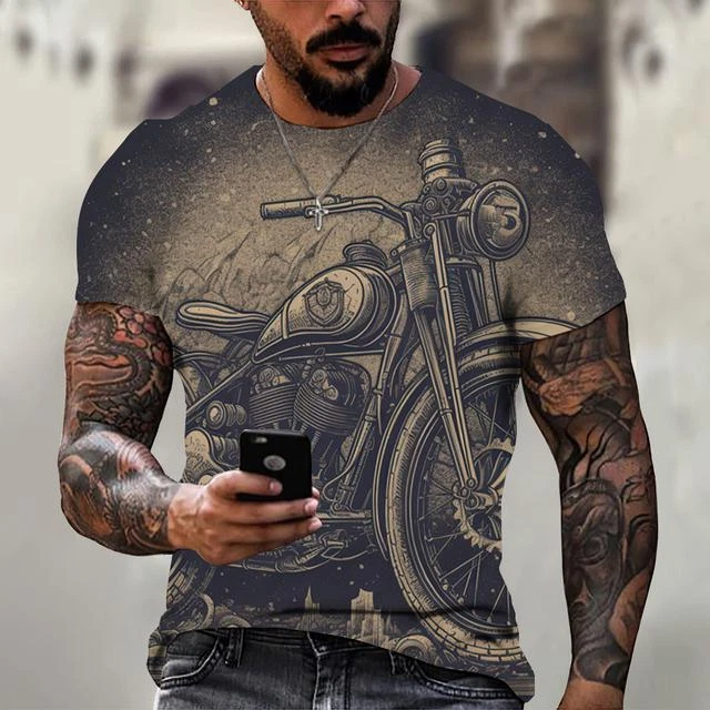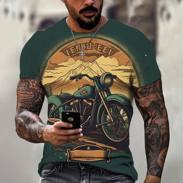 Ride in Style: Men's Vintage Motorcycle Graphic Print T-Shirt Hit the open road with this cool and stylish men's t-shirt, featuring a vintage motorcycle graphic print that will make you feel like you're riding back in time. This tee is a statement piece for any motorcycle enthusiast or anyone who loves a touch of retro flair. Crafted from a comfortable polyester blend, this short-sleeve shirt is perfect for everyday wear. Whether you're cruising on your bike, exploring the city, or just hanging out with friends, this stylish and comfortable tee will keep you looking and feeling great. Key Features: Nostalgic Vintage Motorcycle Graphic Print: A captivating design that celebrates the classic era of motorcycles. Short Sleeves: Ideal for warm weather and everyday wear. Round Neckline: Classic and stylish for any occasion. Regular Fit: Ensures a comfortable and flattering look. Machine Washable: Easy care for hassle-free maintenance. More than just a t-shirt, it's a statement. Make a bold fashion statement with this unique and eye-catching tee. Available in a variety of sizes to ensure the perfect fit. Don't miss out on this opportunity to add some personality to your wardrobe! Additional Details: Theme: Biker Character: Biker Character Family: Biker Material: Polyester Blend Pattern: Graphic Print Size Type: Regular Vintage: Yes Country/Region of Manufacture: China Accents: Print Fabric Type: Broadcloth Product Line: Men's Graphic Print T-Shirt Top Vintage Motorcycle Design Sizes X Personalize: Yes Handmade: No Garment Care: Machine Washable Style: Casual Sleeve Length(cm): Short Item Type: Tops T-shirt Style: Tees Collar: O-neck Pattern Type: Print Process: 3d Print Get yours today and cruise in style! Please kindly note that, sizes are Asian sizes, Usually 1-2 sizes smaller than EU, UK, US, & AU sizes depending on the fit you are after.