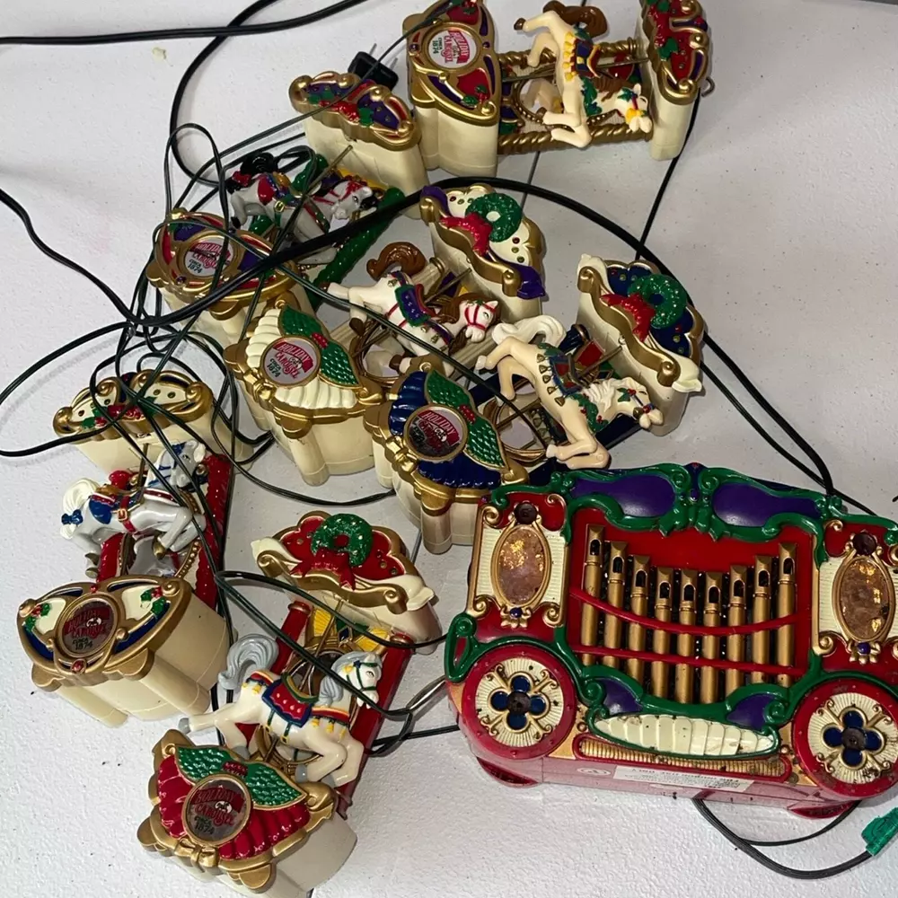 Vintage Mr Christmas Holiday Lighted Musical Carousel Decor. This is old and in box but needs some cleaning up. Has been sitting in a garage. Untested