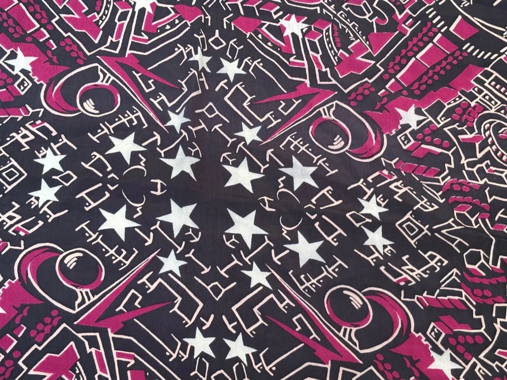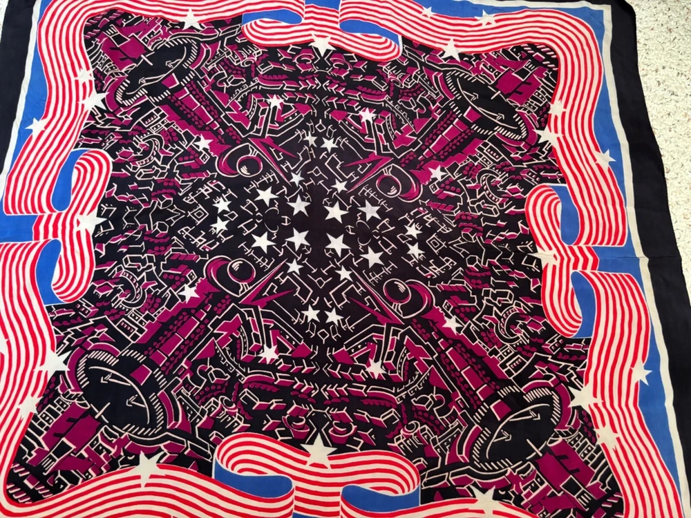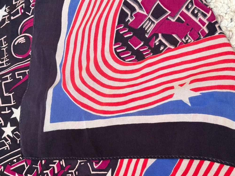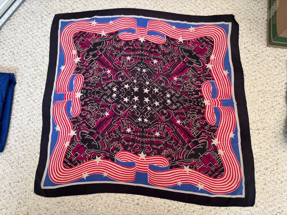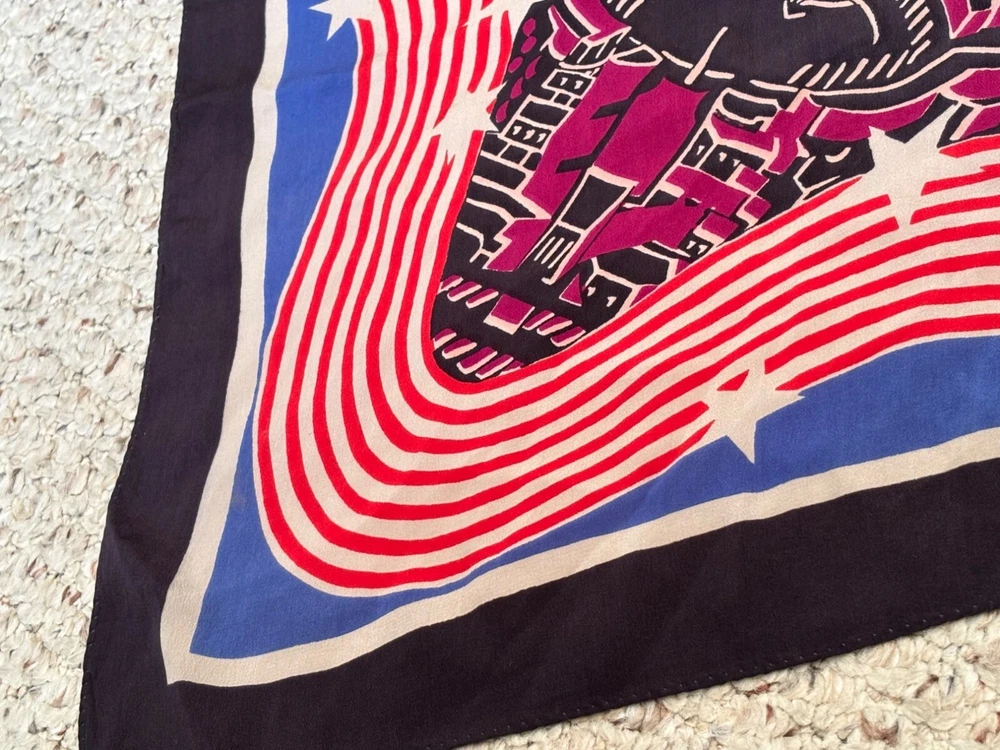 Vintage Multi Color Silk? Scarf Blue red purple black white 33x34