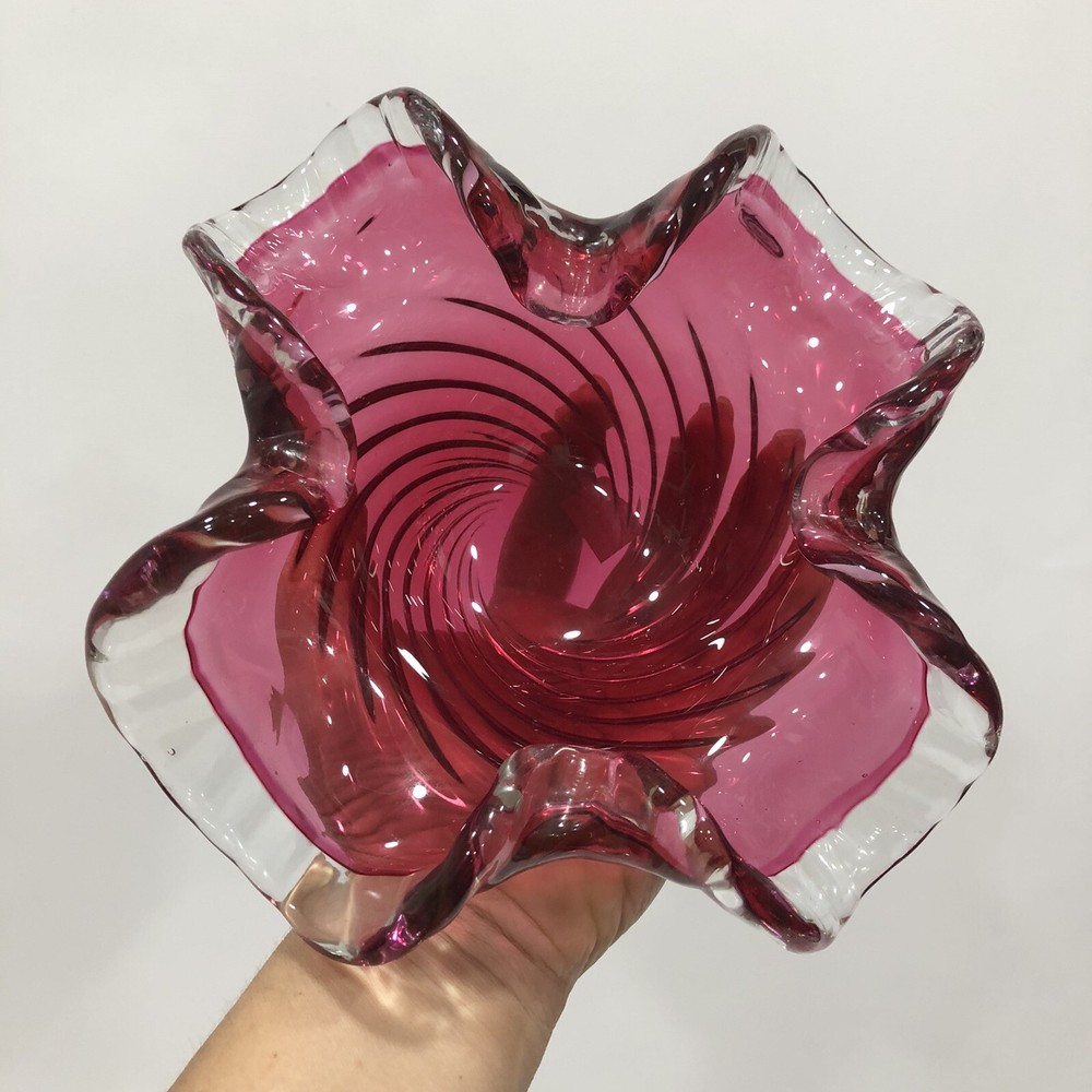 Vintage Art Glass Murano Style Berry Ruffled Hand Blown Candy Dish bowl 4.5”Tall; 8.5”Across. Condition is "Used in great shape! Please see pics for details. Shipped asap by USPS Priority Mail.