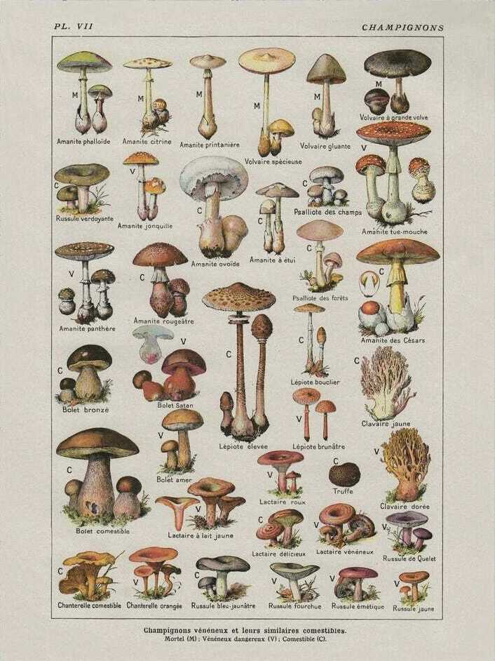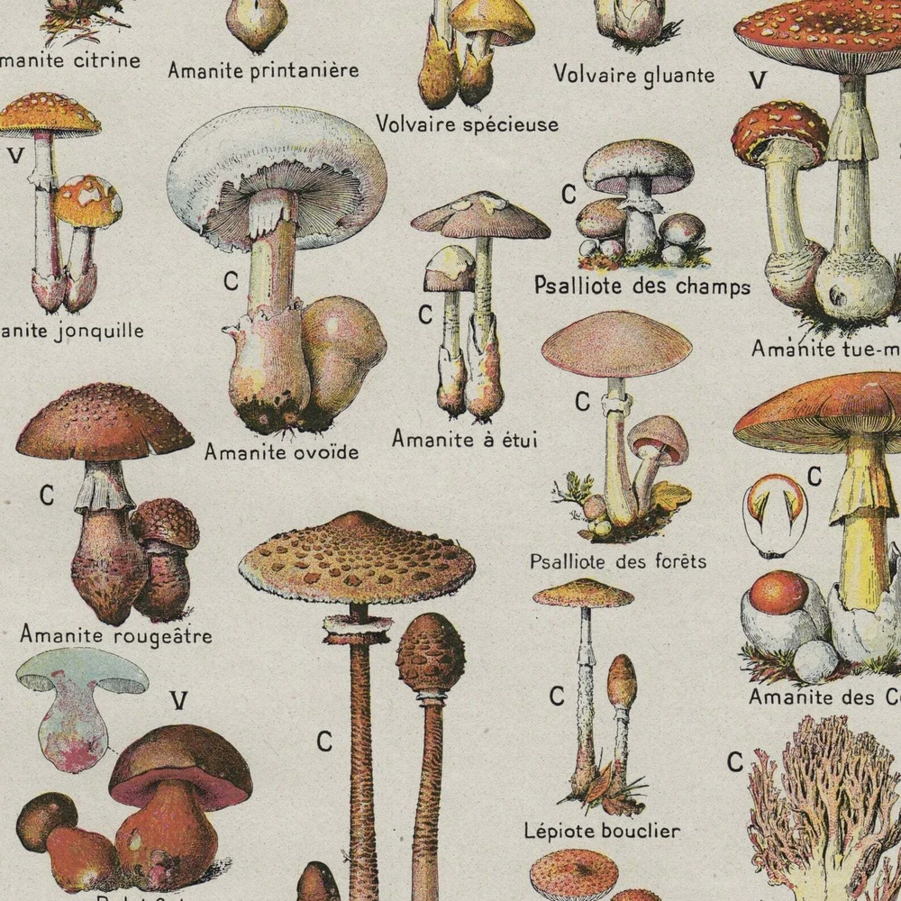 Amazing early 1900s scientific botanical illustration chart of all kinds of edible and poisonous mushrooms. Perfect vintage retro old antique wall art decor for any kitchen, restaurant, pizza shop, or living room and a perfect gift for anyone who likes to cook, bake or loves mushrooms. Frame not included. Actual color may vary slightly due to monitor settings. The poster: We print on museum-quality thick, durable, matte paper and use Canon Lucia 12 color pigment ink. These beautiful posters are printed on archival, acid-free paper. It's fingerprint resistant and perfect for framing. Rolled Canvas: This canvas print will come rolled and ready for framing or stretching on a gallery wrap frame. Wall Decals: Wall decals are printed on reusable peel and stick fabric vinyl. These wall decals are removable, restickable, resilient, and will not damage your walls. About shipping: We ship worldwide. It generally takes 1-2 days to process and ship from Vermont. Delivery within the USA is estimated at 2 - 10 days, outside USA is 5 - 20 days depending on country.
