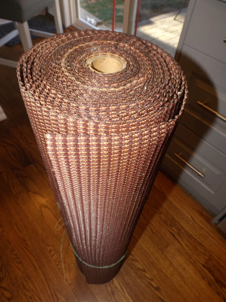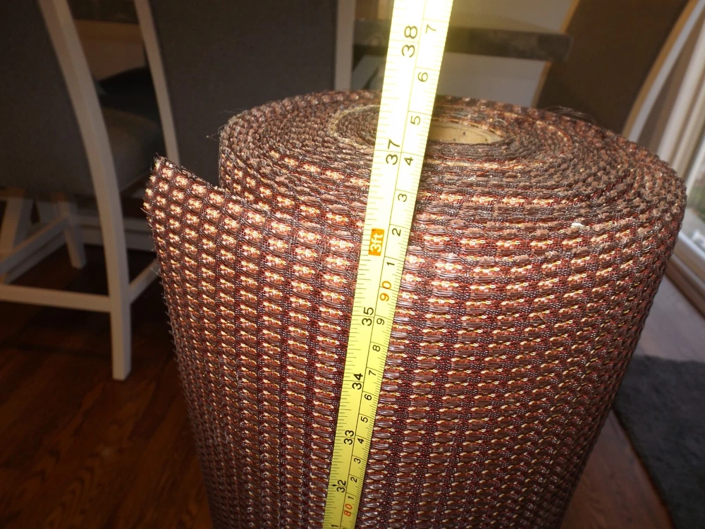 I have found a large roll of what I thing is Magnavox Console stereo metallic maroon speaker grill fabric. This fabric I am selling in lengths of 12" x 36". You can purchase large lengths but the roll height is 36" max as shown in the photo. Beautiful rare new old stock maroon, gold, black square checked fabric. Very attractive. When you purchase, send me a message telling me exactly what you are expecting to receive so we get it right. 12" x 36" - $24.99 24" x 36" - $49.98 etc.