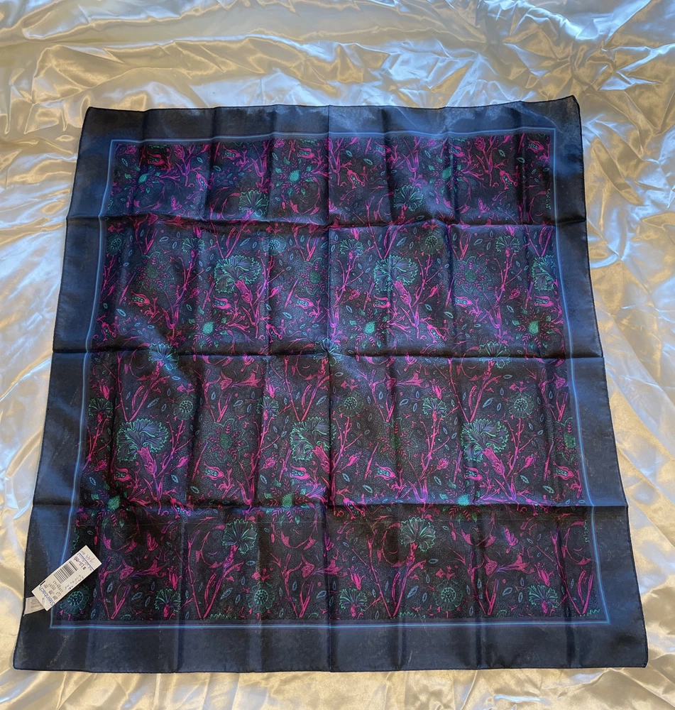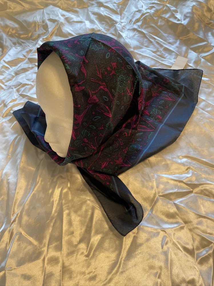 Vintage NWT Glentex Polyester Floral Scarf Made In Italy Head Covering. Beautiful new with tags vintage large scarf We got it at an estate sale. It has some smell from being stored in a closet for a long time Price tag has some writing on it Was sold at Steinbach store in New Jersey in 1990 Please see pictures for details and measurements Thank you