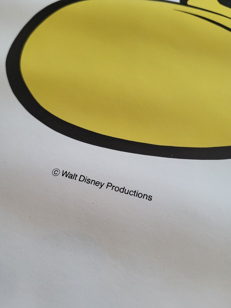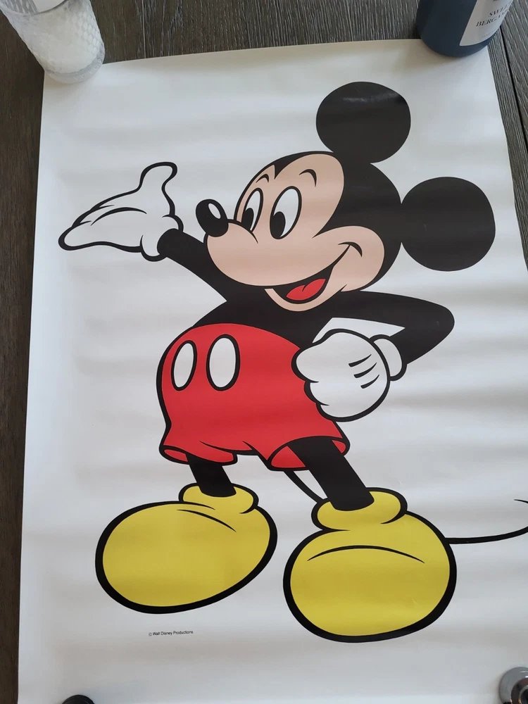 The vintage Mickey Mouse poster features a classic pose of the beloved Disney character from the 1970s or 1980s. Measuring 18" x 24", this collectible item captures the iconic theme and franchise of Disney, making it a nostalgic piece for fans and collectors alike. With the brand's authenticity and timeless appeal, this poster showcases the nostalgia and charm of the early days of contemporary Disney merchandise. Perfect for adding a touch of vintage flair to any Disney collection.
